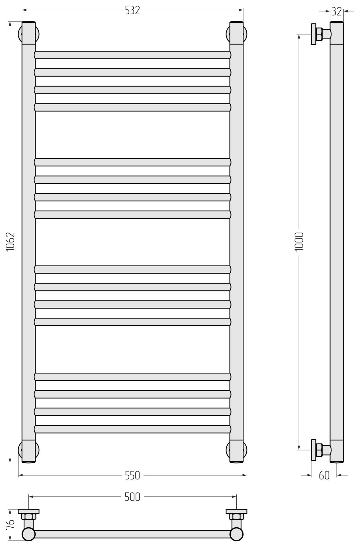 Полотенцесушитель водяной Сунержа Богема+ П16 500x1060 мм (прямая перемычка) 05-0220-1050, состаренная бронза