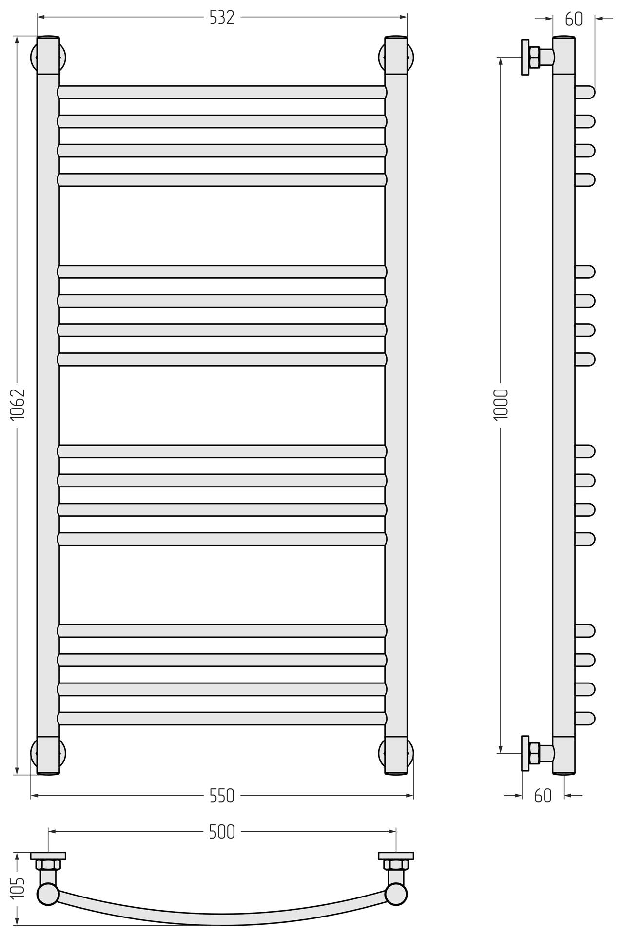 Полотенцесушитель водяной Сунержа Богема+ П16 500x1060 мм (выгнутая перемычка) 30-0221-1050, белый матовый