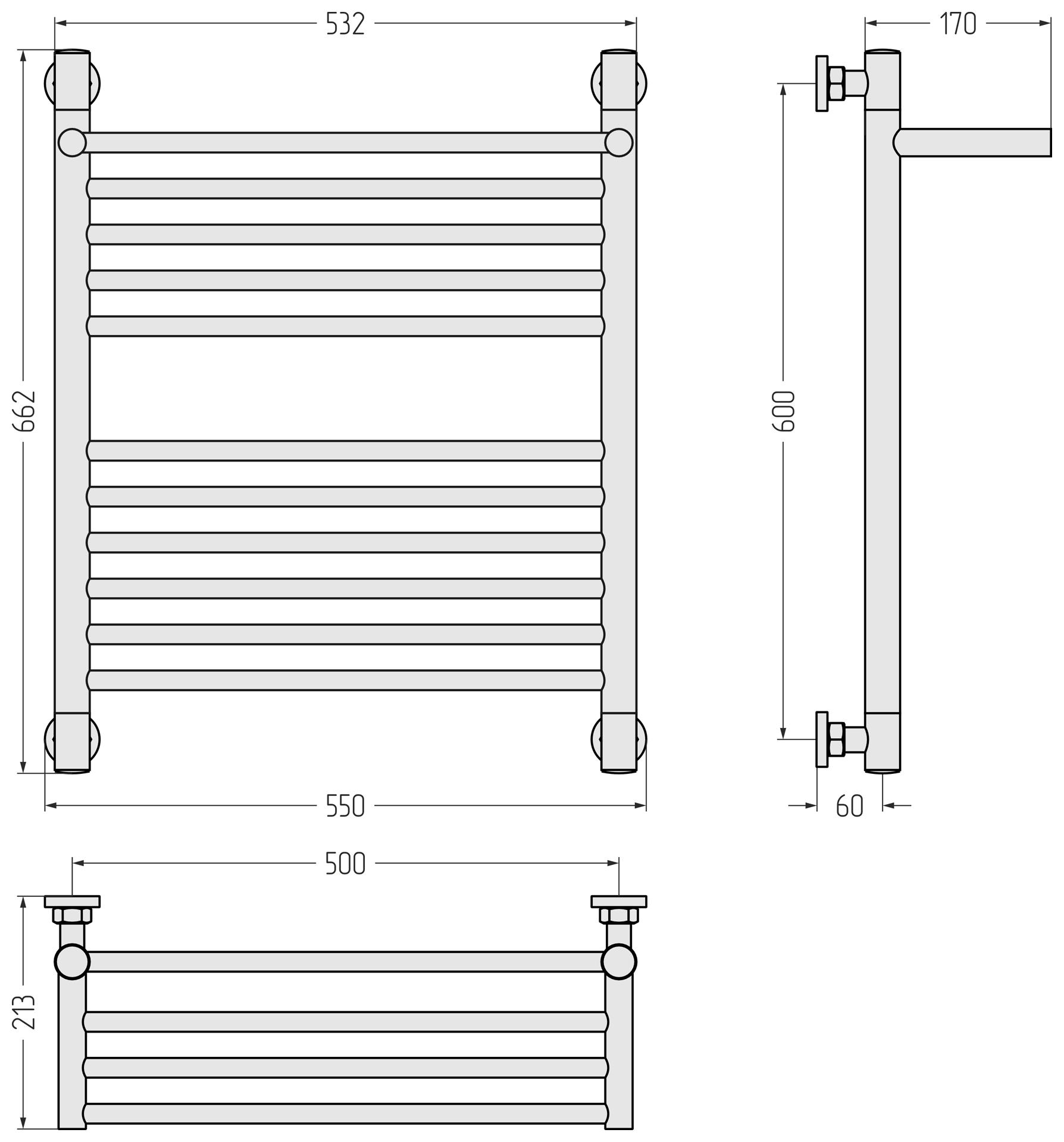 Полотенцесушитель водяной Сунержа Богема+ с полкой П11 500x660 мм 31-0223-6050, чёрный матовый