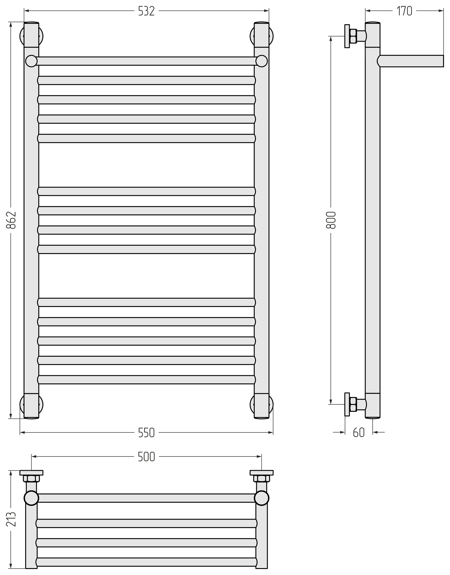 Полотенцесушитель водяной Сунержа Богема+ с 1 полкой 032-0223-8050, размер 550x862 мм, 14 перекладин, цвет золото матовое.