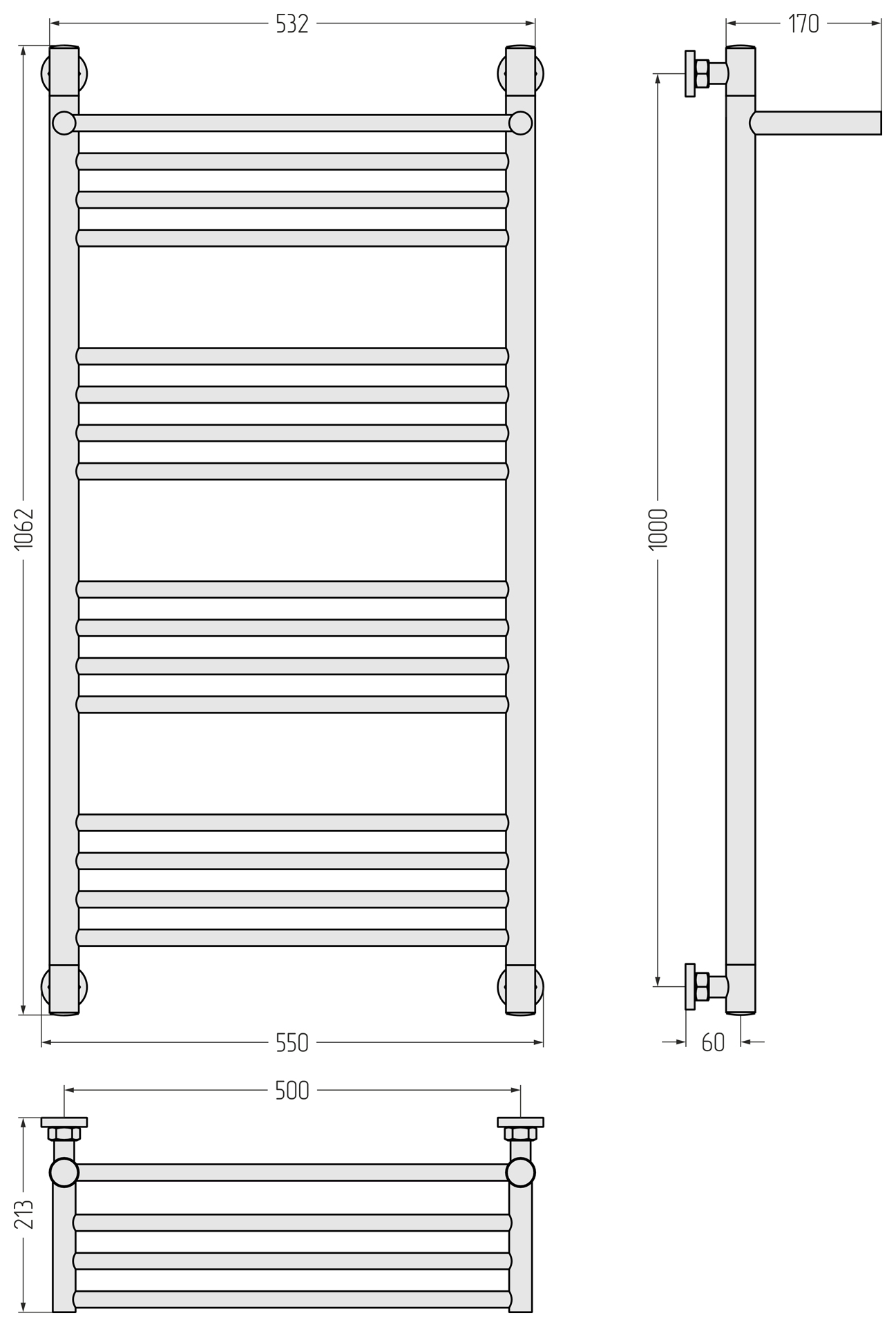 Полотенцесушитель водяной Сунержа Богема+ с полкой П16 500x1060 мм 05-0223-1050, состаренная бронза