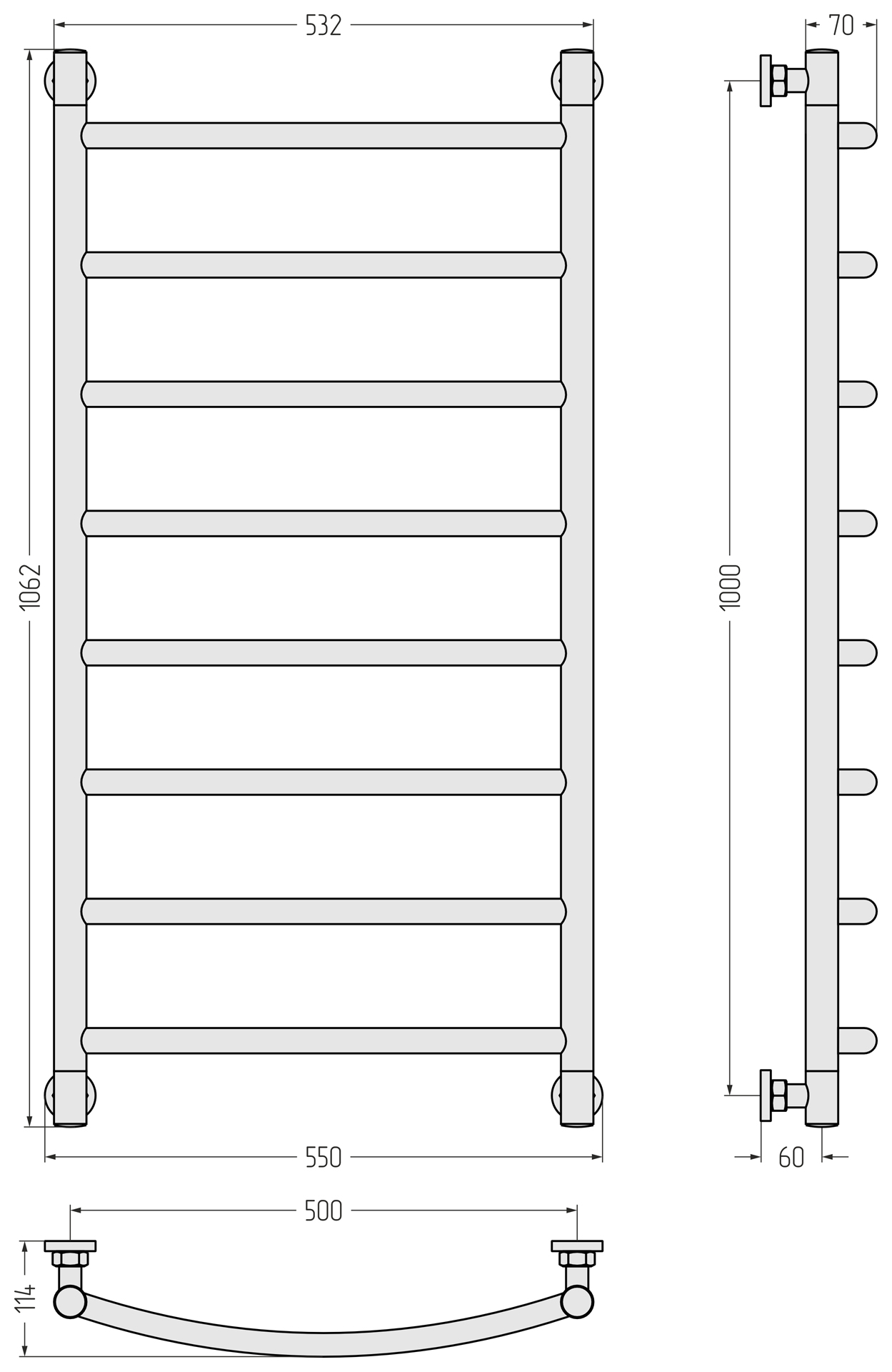 Размер полотенцесушителя - мм