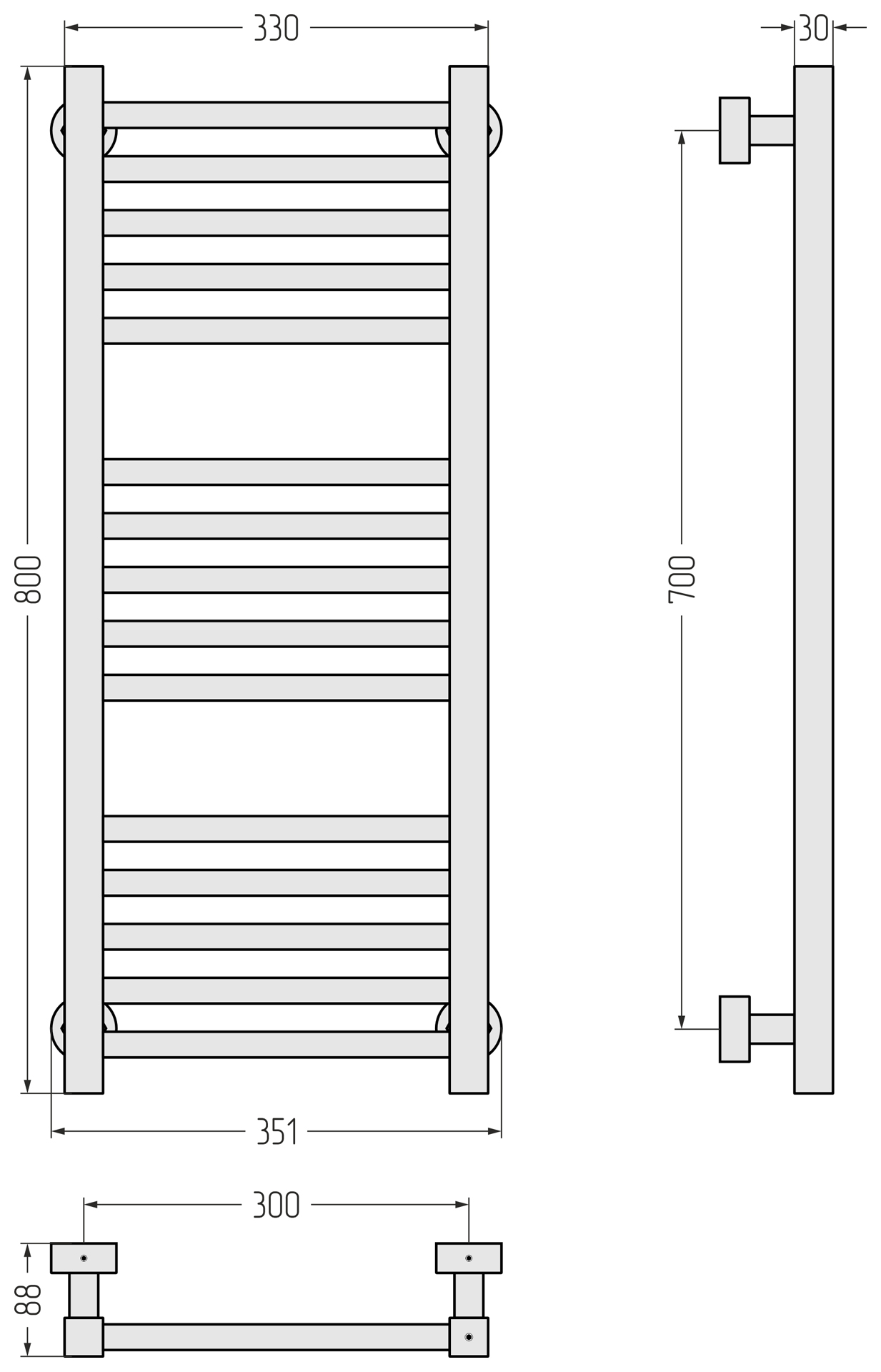 Полотенцесушитель водяной Сунержа Модус PRO П15 300x800 мм 30-0450-8030, белый матовый
