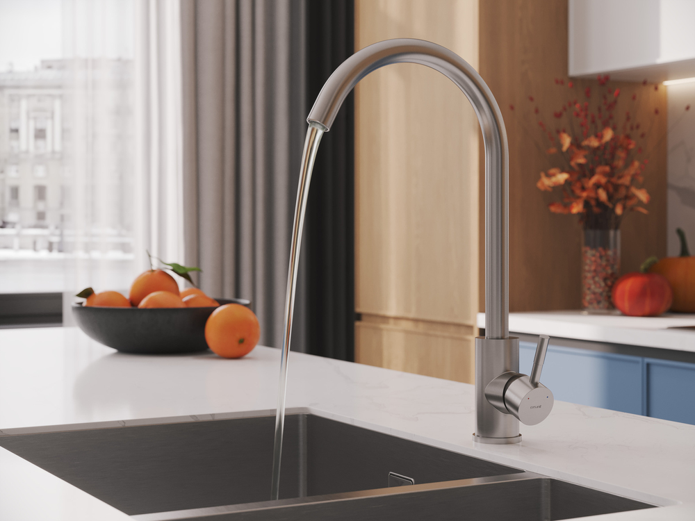 Смеситель для кухни Cersanit Como A68242 высота излива 256 мм, материал нержавеющая сталь, цвет сатин.