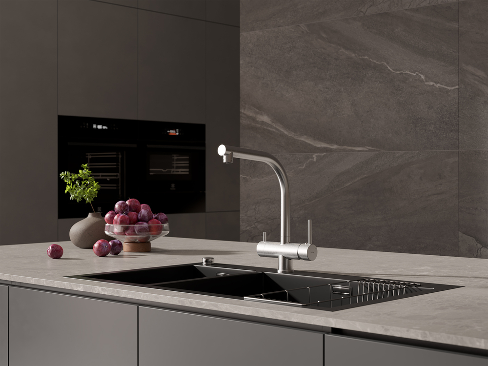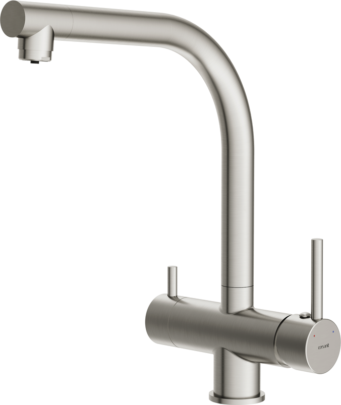 Смеситель для кухни Cersanit Crea A68224 с подключением фильтра питьевой воды, высота излива 281 мм, материал латунь, цвет сатин.