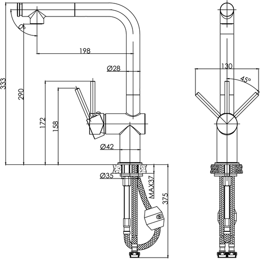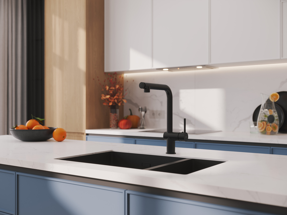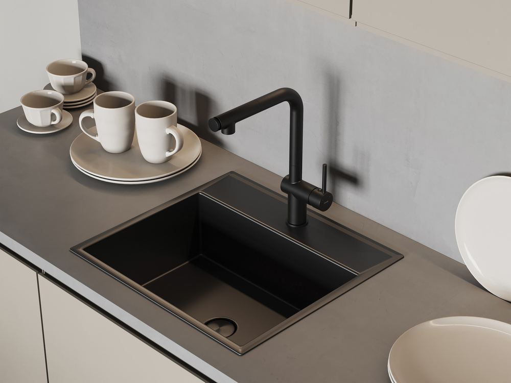 Смеситель для кухни Cersanit Flavis A68237, чёрный