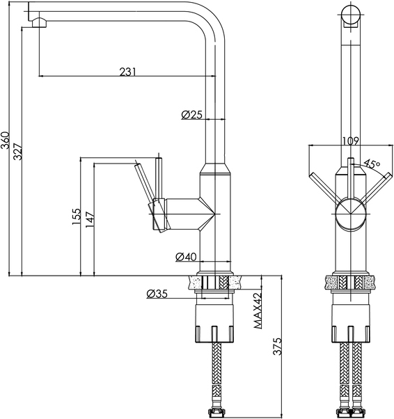 Смеситель для кухни Cersanit Flavis A68241, сатин
