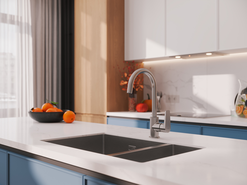 Смеситель для кухни Cersanit Moduo A68222 с подключением фильтра питьевой воды, высота излива 217 мм, материал латунь, цвет сатин.