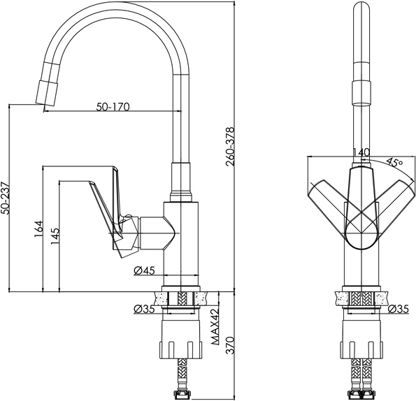 Смеситель для кухни Cersanit Moduo A68231 с гибким изливом, высота излива 237 мм, материал нержавеющая сталь, цвет сатин.