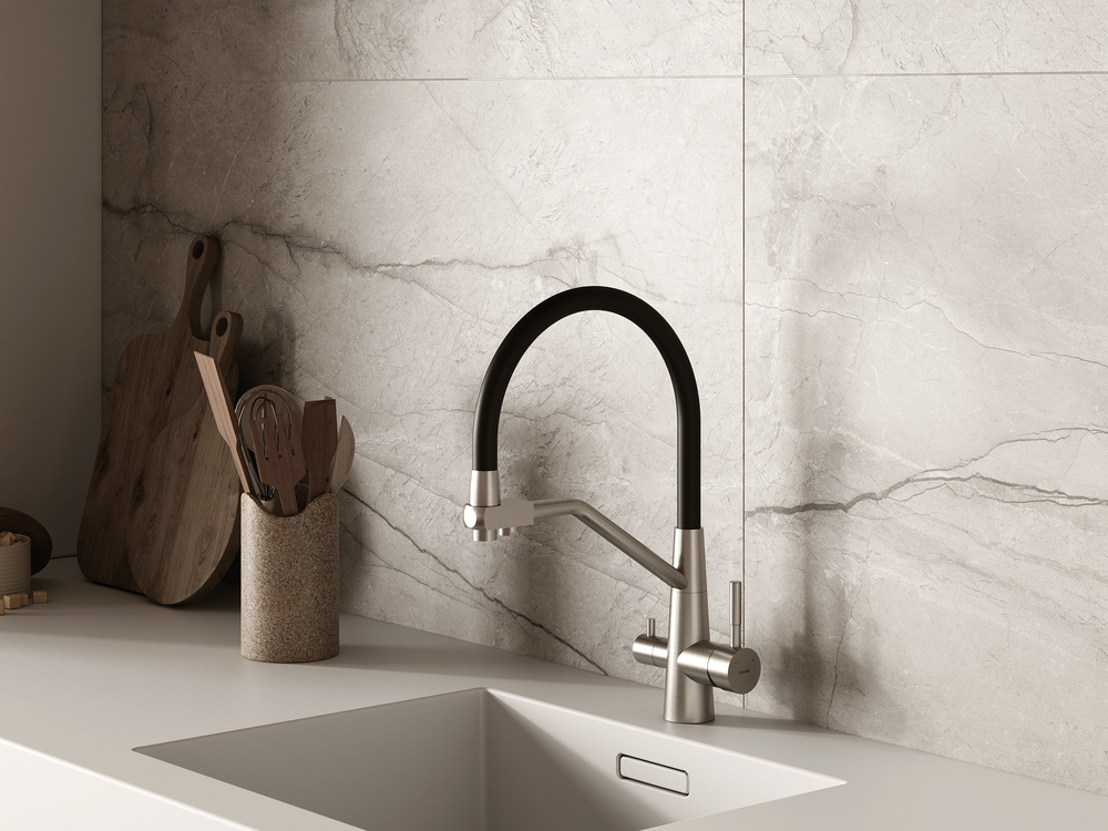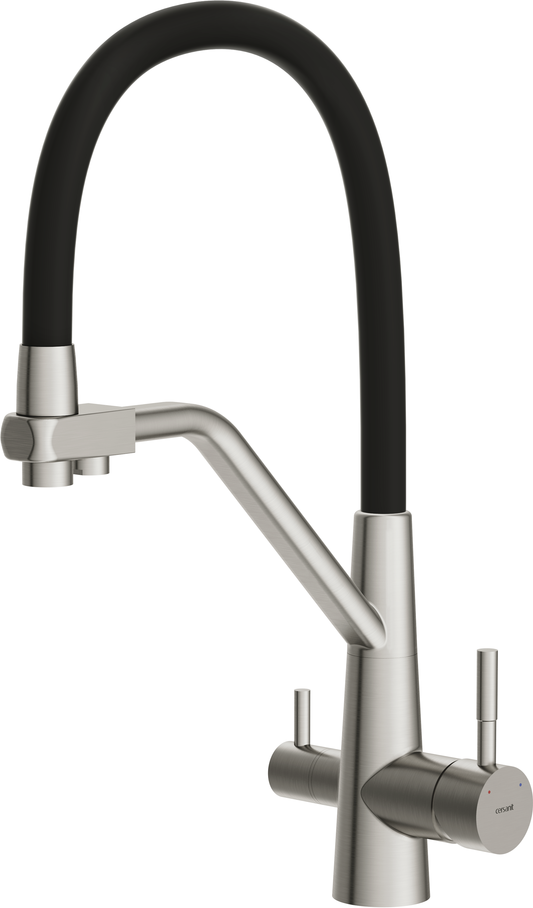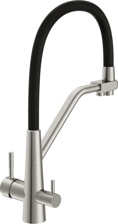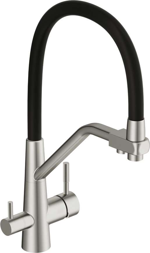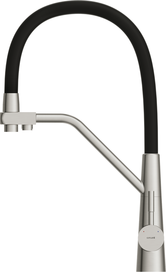 Смеситель для кухни Cersanit Vivo A64837 с подключением фильтра питьевой воды и гибким изливом, высота излива 200 мм, материал нержавеющая сталь, цвет сатин.