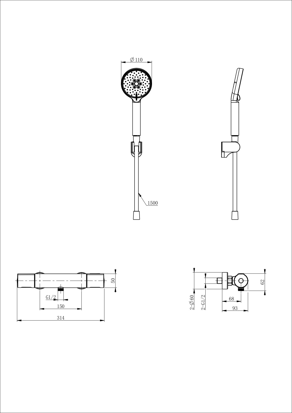Смесители для душа с термостатом Wonzon & Woghand Inn WW-A2006-A-BGG, тёмный графит