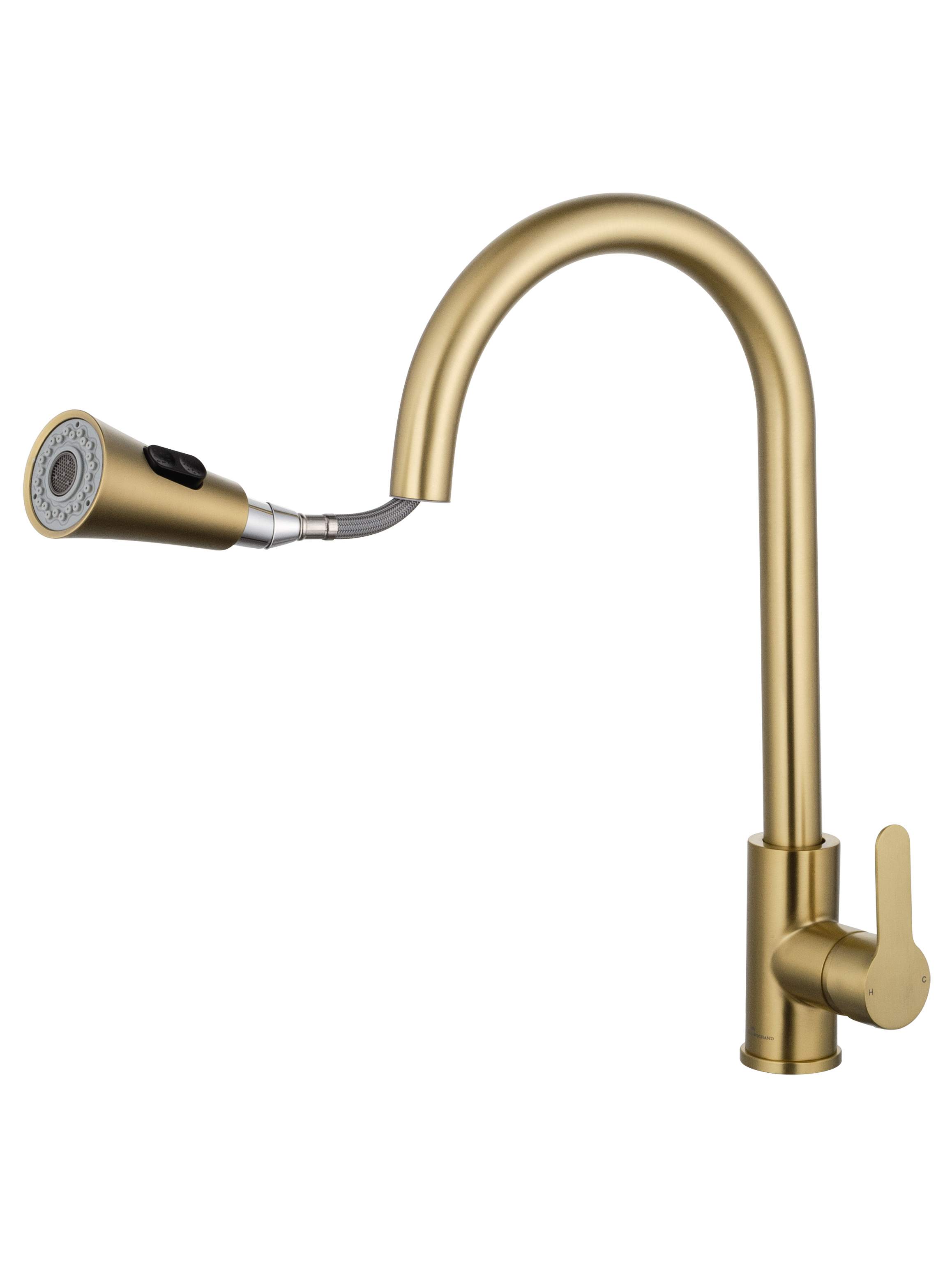 Смесители для кухни Wonzon & Woghand WW-121E201L-BG с выдвижным изливом, материал нержавеющая сталь, цвет золото.