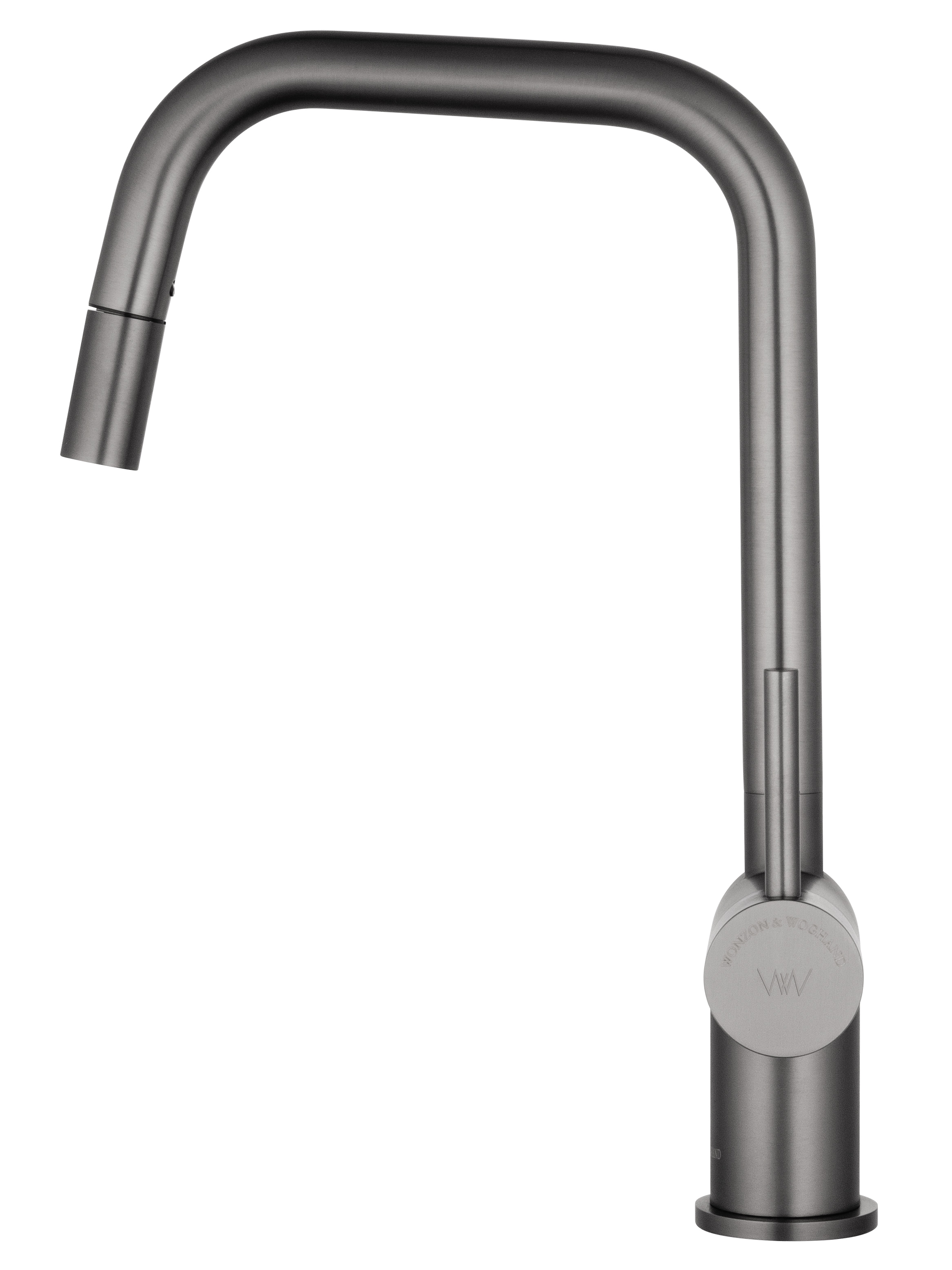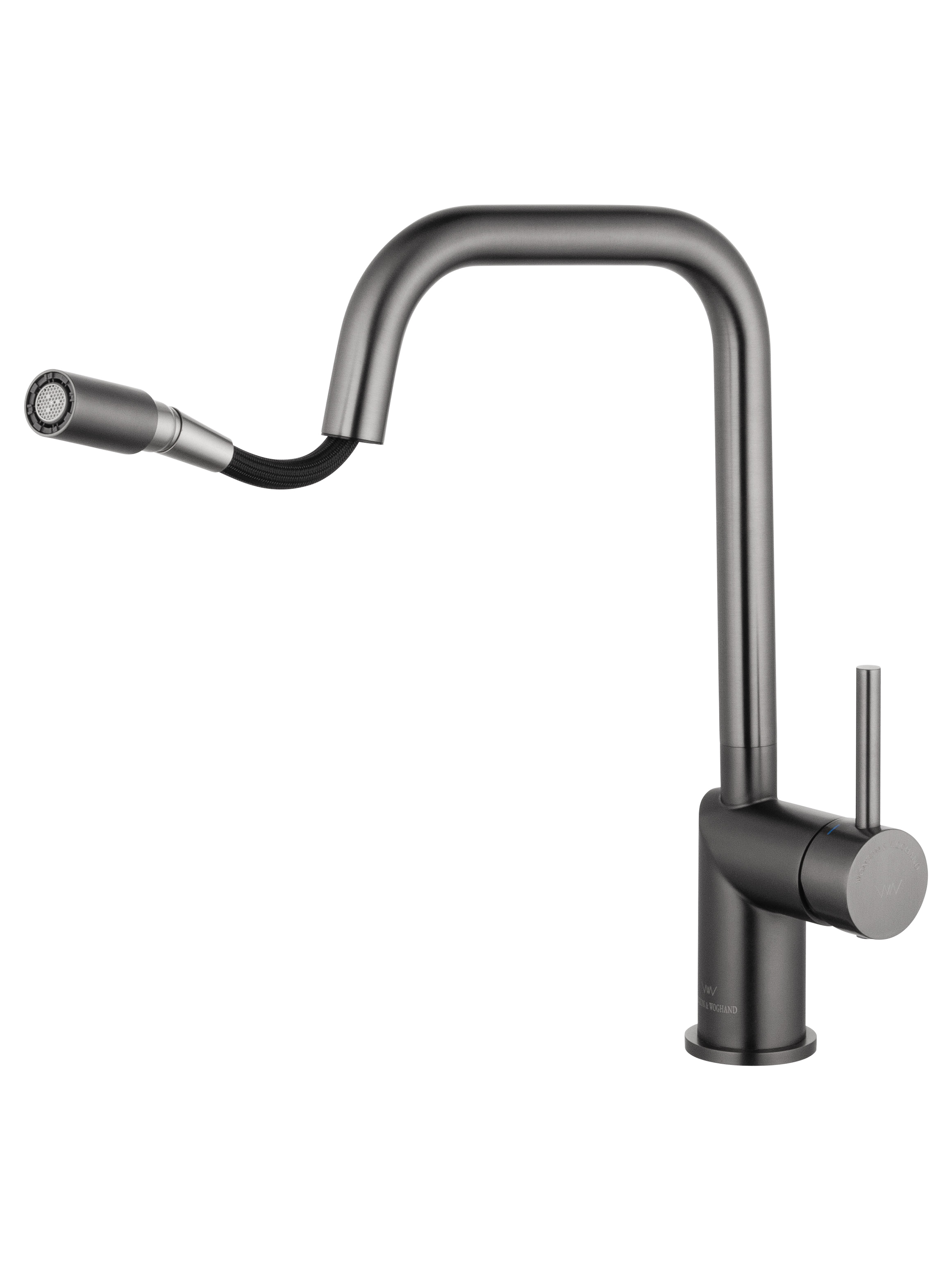 Смесители для кухни Wonzon & Woghand WW-6018-BGG с выдвижным изливом, материал нержавеющая сталь, цвет тёмный графит.
