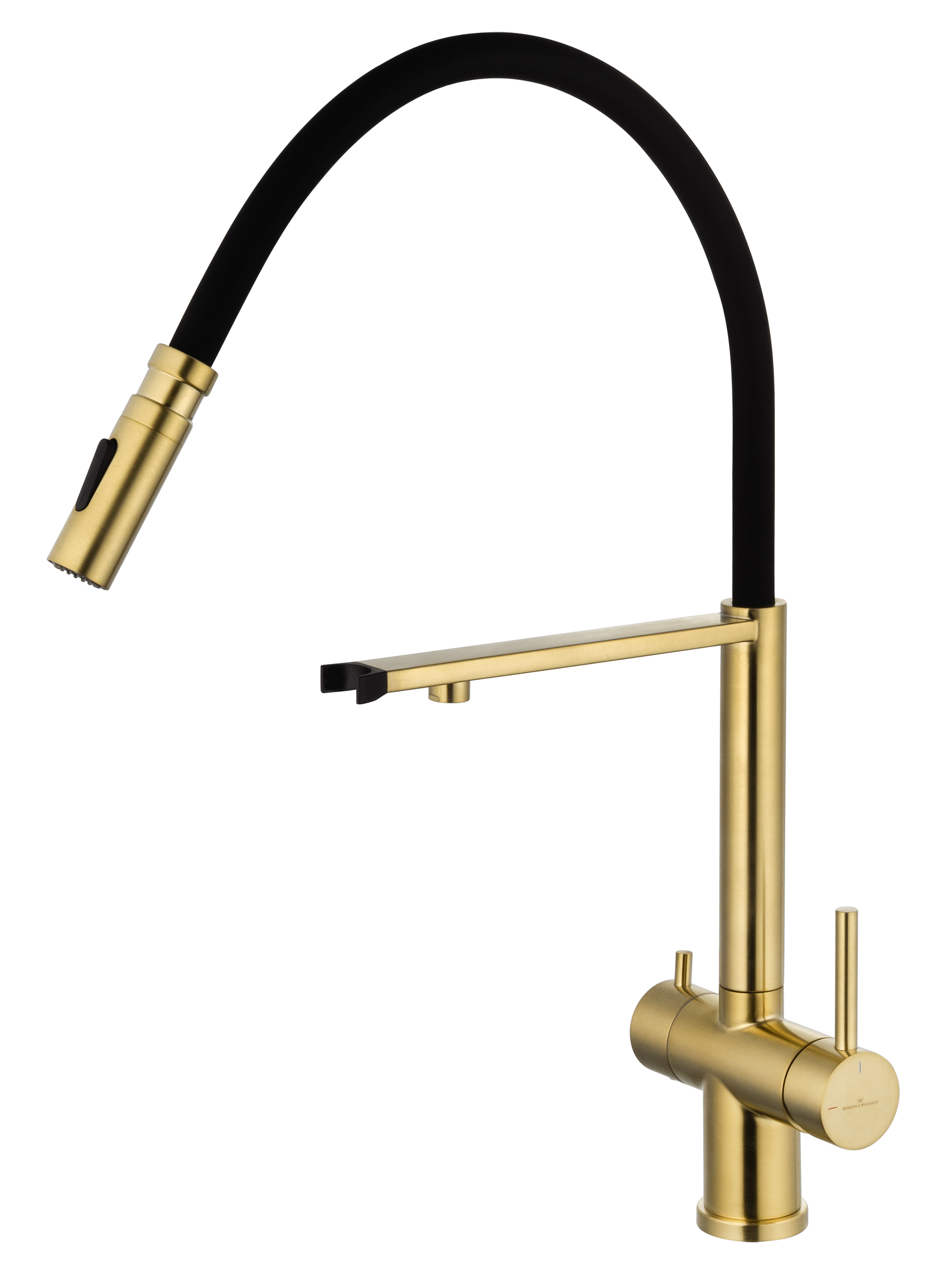 Смесители для кухни Wonzon & Woghand WW-88458009-BG с подключением фильтра и гибким изливом, материал нержавеющая сталь, цвет золото.