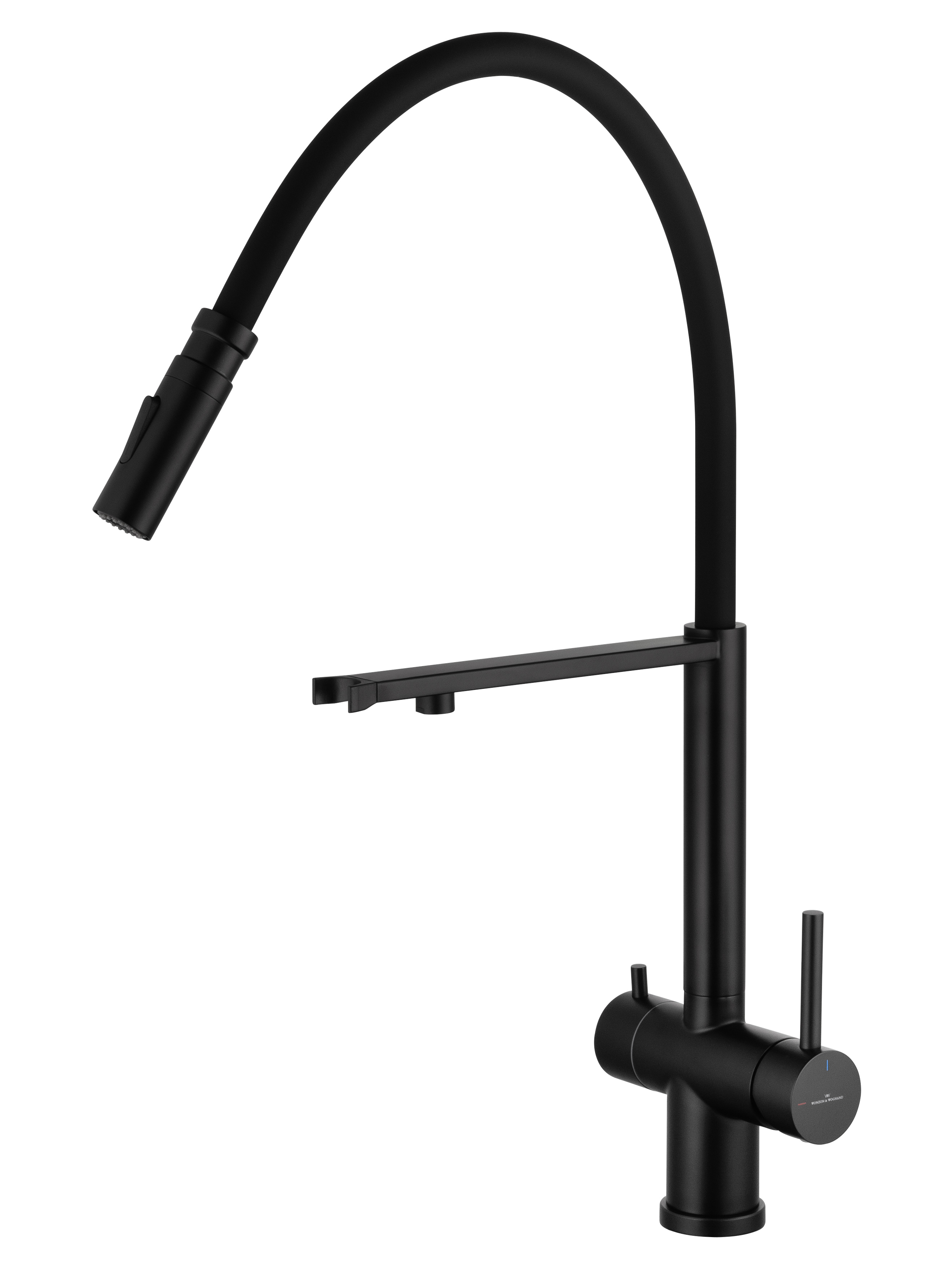 Смесители для кухни Wonzon & Woghand WW-88458009-MB с подключением фильтра и гибким изливом, материал нержавеющая сталь, цвет чёрный.
