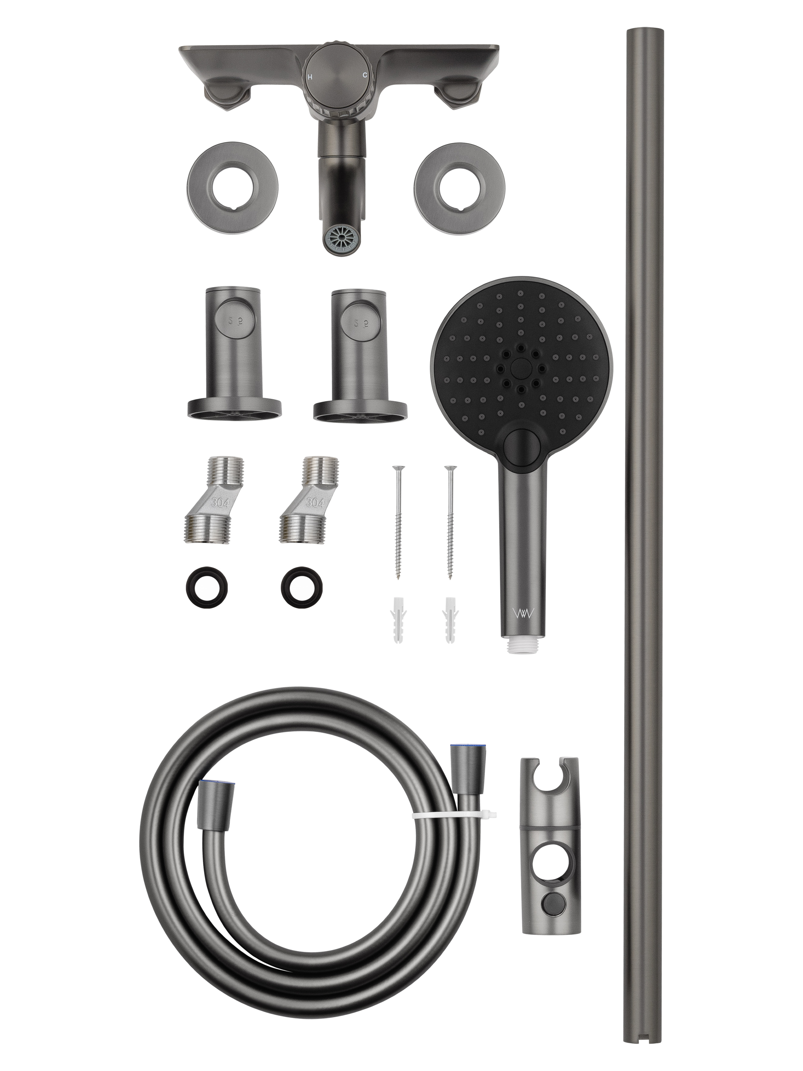 Смесители для ванны Wonzon & Woghand Click WW-FE05L222-BGG с душевым гарнитуром, материал латунь, цвет тёмный графит.