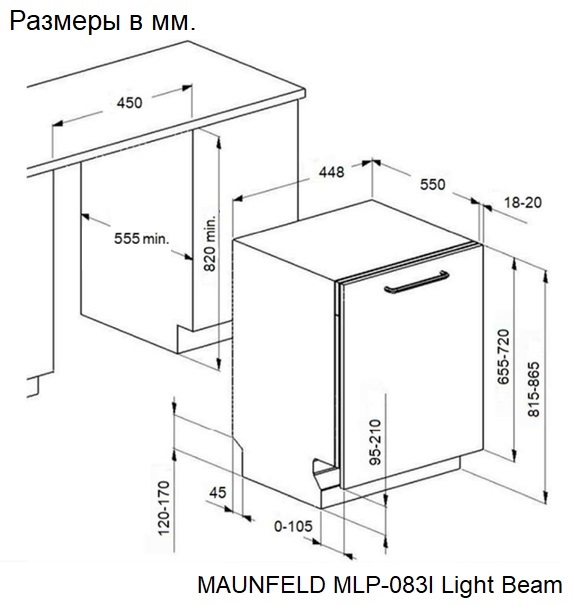 Встраиваемая посудомоечная машина Maunfeld MLP-083I Light Beam