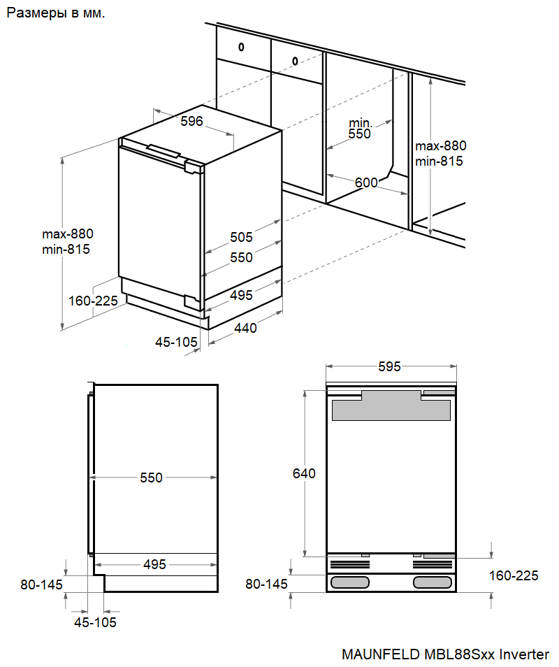 Встраиваемый однокамерный холодильник Maunfeld MBL88SWGR Inverter