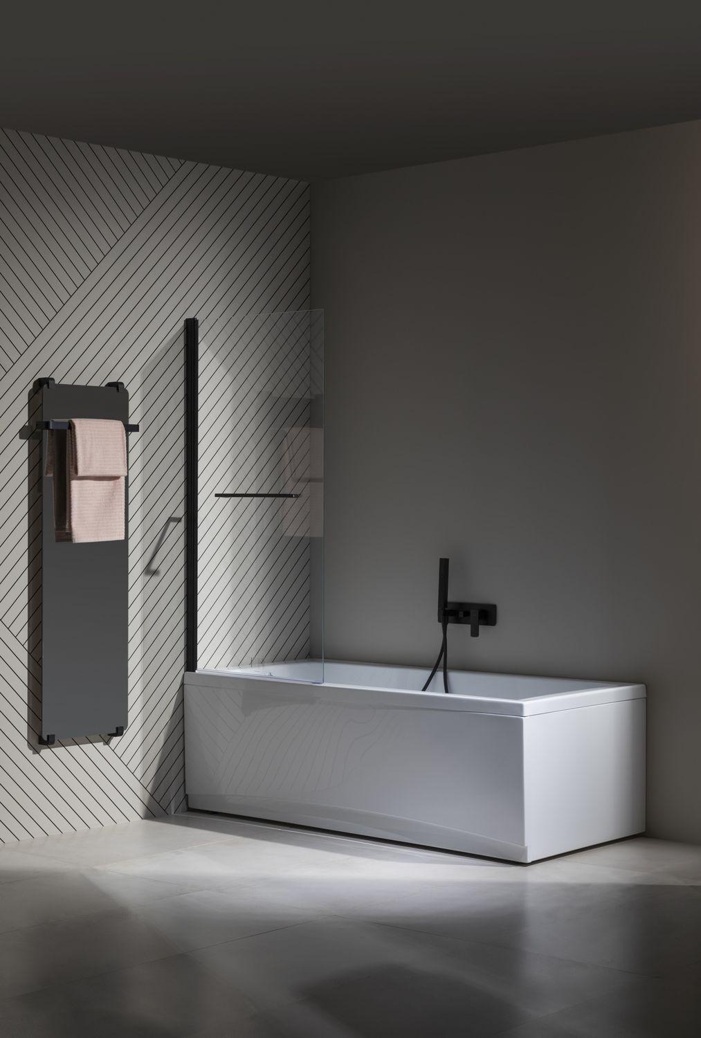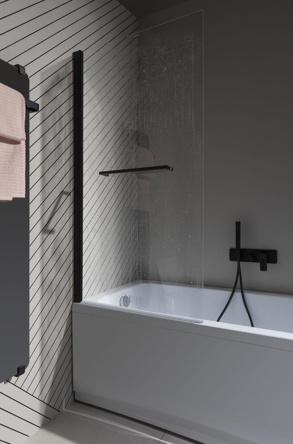 Шторка для ванны Allen Brau Priority 800х1500 мм 3.31022.BBA, распашная, стекло прозрачное 6 мм, профиль чёрный брашированный.