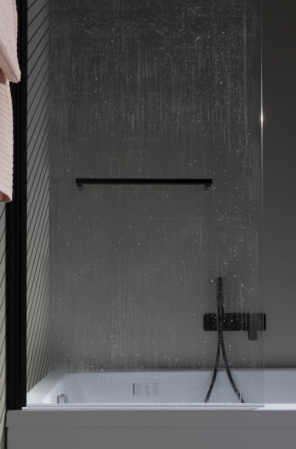 - Поверхность стекла обработана невидимым невооруженным глазом полимерным защитным слоем EasyClean, который препятствует образованию подтеков и надолго оставляет шторку чистой, к тому же, облегчает приведение стеклянной поверхности в порядок.