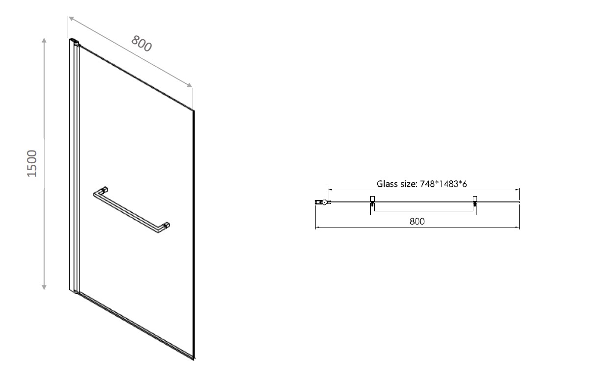 Шторка для ванны Allen Brau Priority 3.31024.BA 800х1500 мм , распашная, стекло прозрачное 6 мм, профиль серебро брашированное.