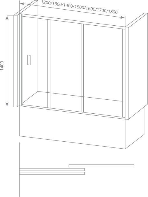 Шторка для ванны Bas Screen WTW-170-C-CH, размер 1700х1400 мм. Профиль хром, стекло прозрачное 4 мм.