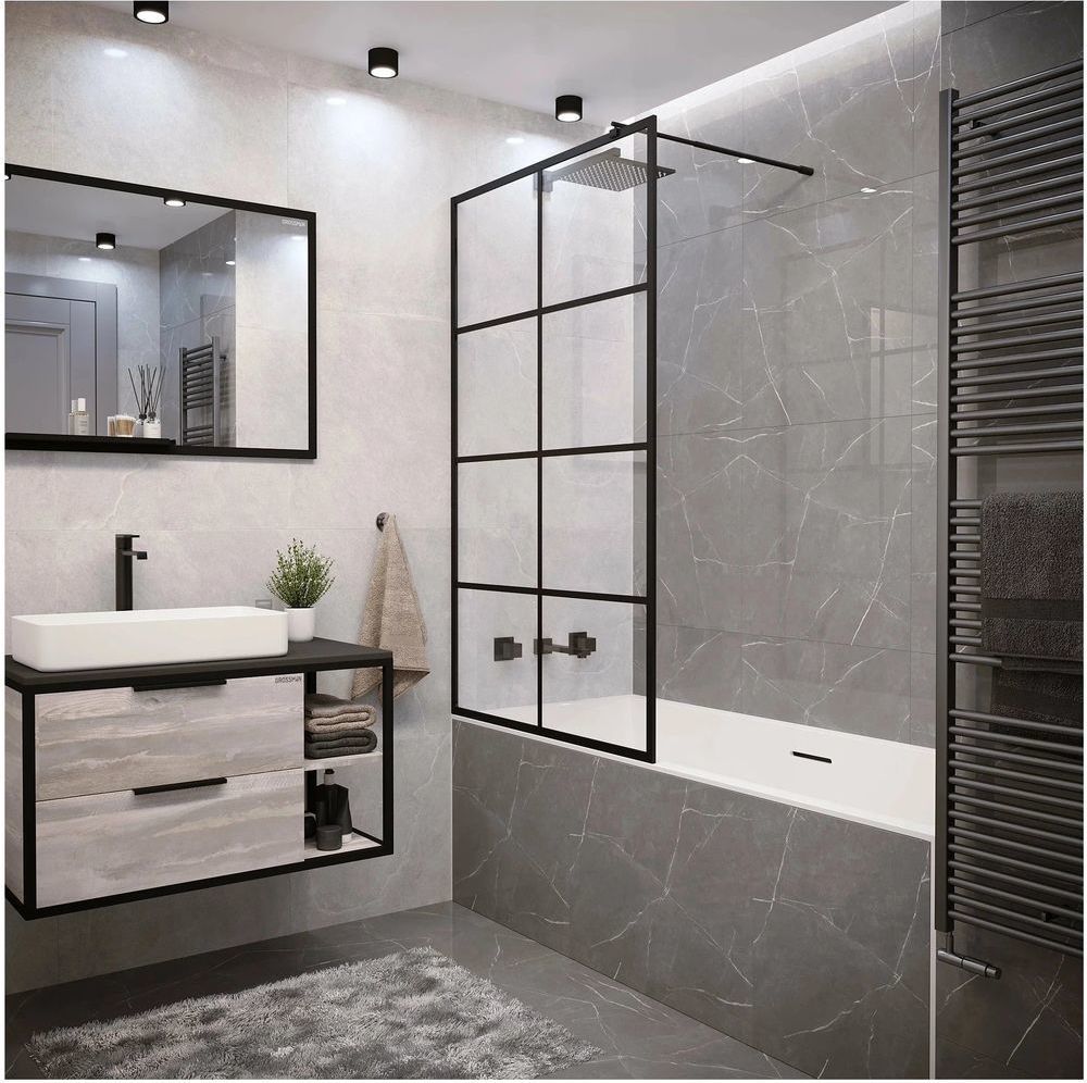 Шторка для ванны Grossman, размер 1000х1500 мм, профиль чёрный, стекло прозрачное 6 мм.