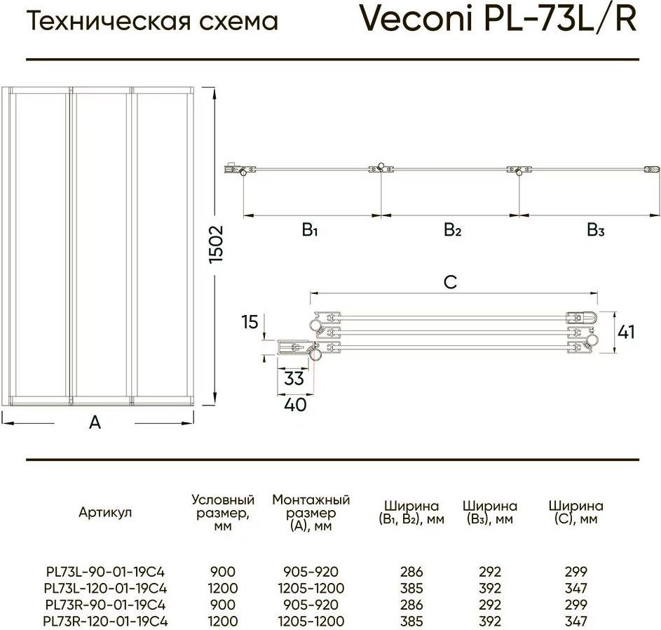 Характеристики Душевая шторка Veconi (PL73BR-90-01-19C4)