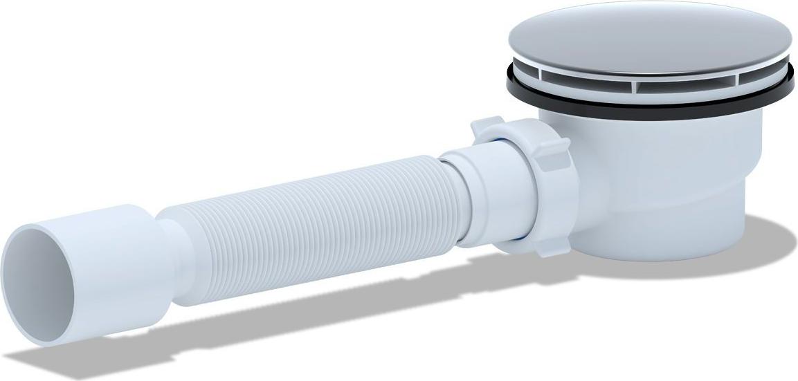 Сифон для душевого поддона Ани Пласт E325VAL, 11/2 дюйма, вальцовка хром с гибкой трубой 40х50 мм.
