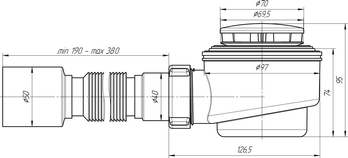 - Компактная конструкция позволяет установить сифон даже в условиях ограниченного пространства под душевым поддоном, что особенно актуально для небольших ванных комнат и душевых кабин.