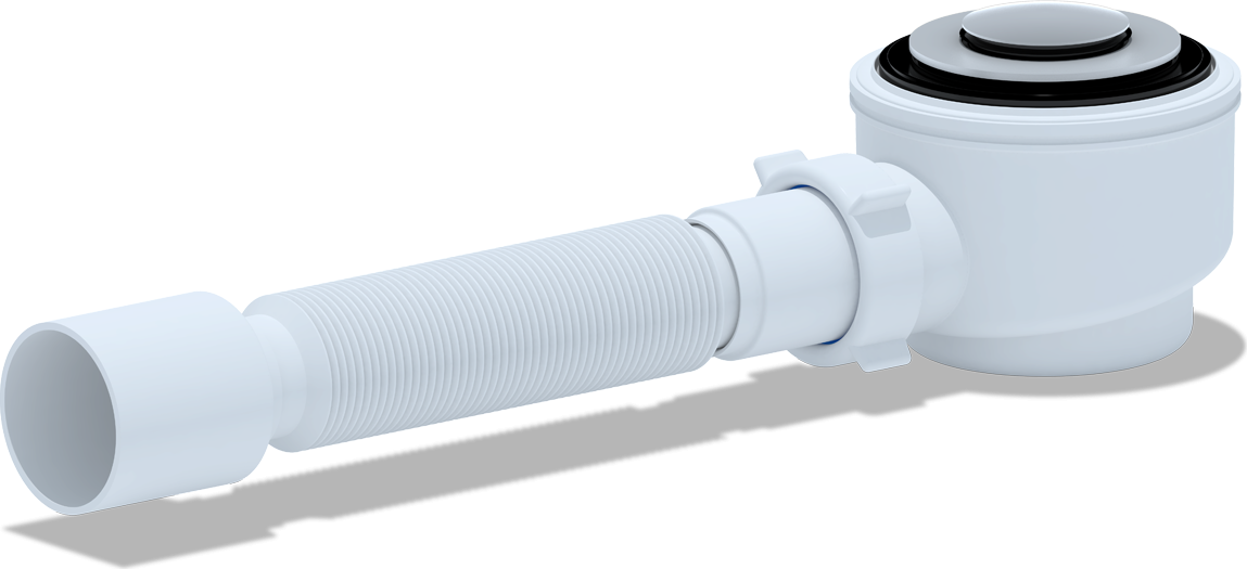 - Компактная конструкция позволяет установить сифон даже в условиях ограниченного пространства под душевым поддоном, что особенно актуально для небольших ванных комнат и душевых кабин.