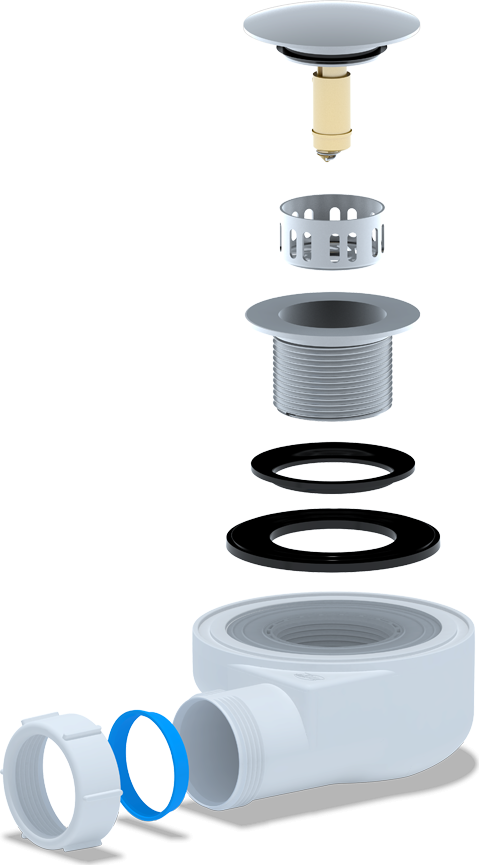 Сверхнизкая высота (53 мм) позволяет устанавливать сифон в душевых поддонах с ограниченным пространством под ними, что особенно актуально для современных ванных комнат.