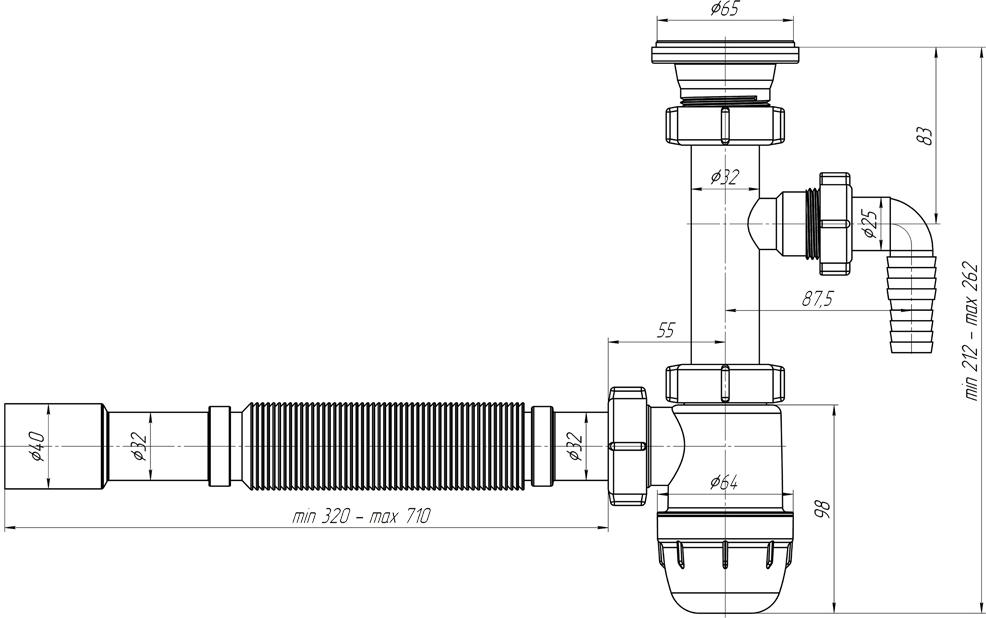 - Гибкая труба 32х32/40 мм обеспечивает удобство подключения к канализационной системе даже в условиях ограниченного пространства и нестандартной конфигурации, упрощая процесс установки и экономя время и усилия.