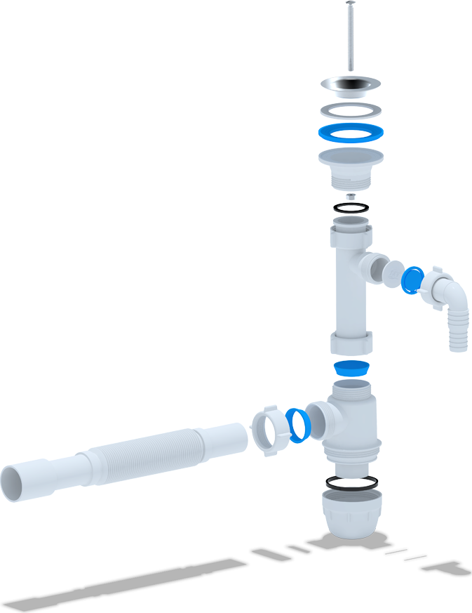 - Компактная конструкция позволяет устанавливать сифон даже в условиях ограниченного пространства под раковиной, что особенно актуально для небольших ванных комнат и кухонь.