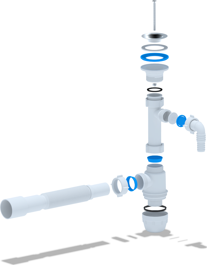 - Компактная конструкция позволяет устанавливать сифон даже в условиях ограниченного пространства под раковиной, что особенно актуально для небольших ванных комнат и кухонь.