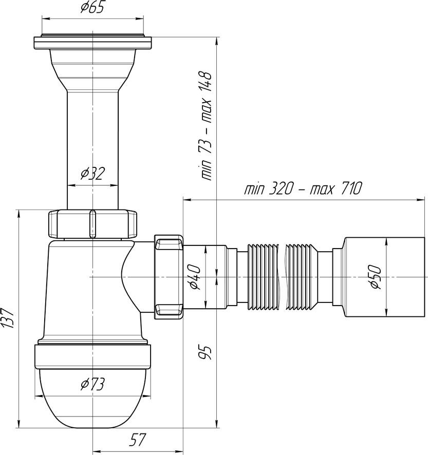Гибкая труба 40×50 мм облегчает установку сифона даже в труднодоступных местах и позволяет адаптировать конструкцию под особенности монтажа.