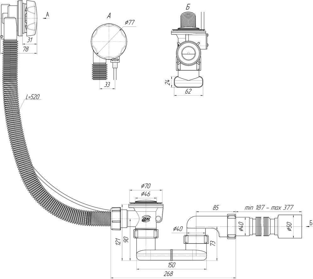 Сифон для ванны полуавтомат Ани Пласт EM701