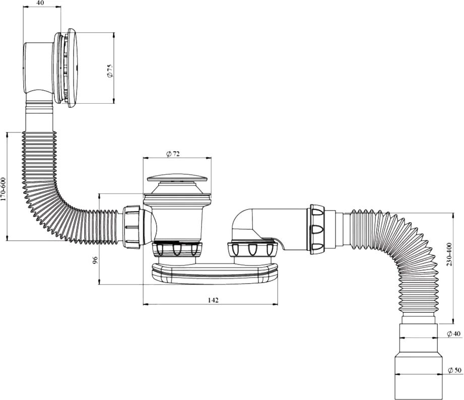 Сифон для ванны Unicorn S122E, управление Click-clack.