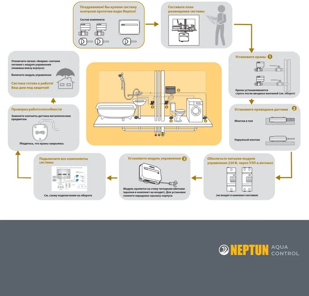 Система защиты от протечки воды 3/4 Нептун Neptun Aquacontrol 2 крана, 2 проводных датчика 100037060800