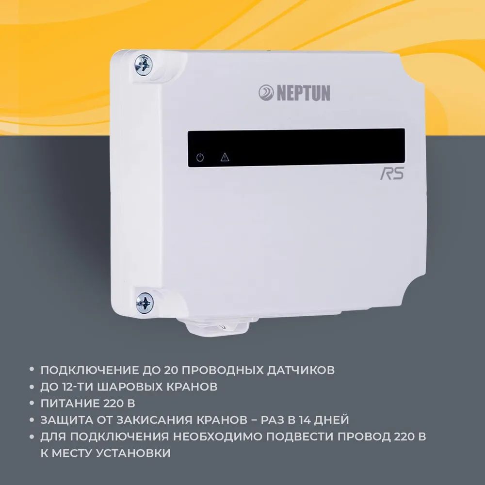- Система контроля протечки воды Neptun Base предназначена для своевременного обнаружения и локализации протечек воды в системе водоснабжения и отопления жилых домов, коттеджей, офисных зданий, магазинов. Система заблокирует подачу воды до устранения причин протечки и проинформирует о возникшей аварии звуковым и световым сигналами.