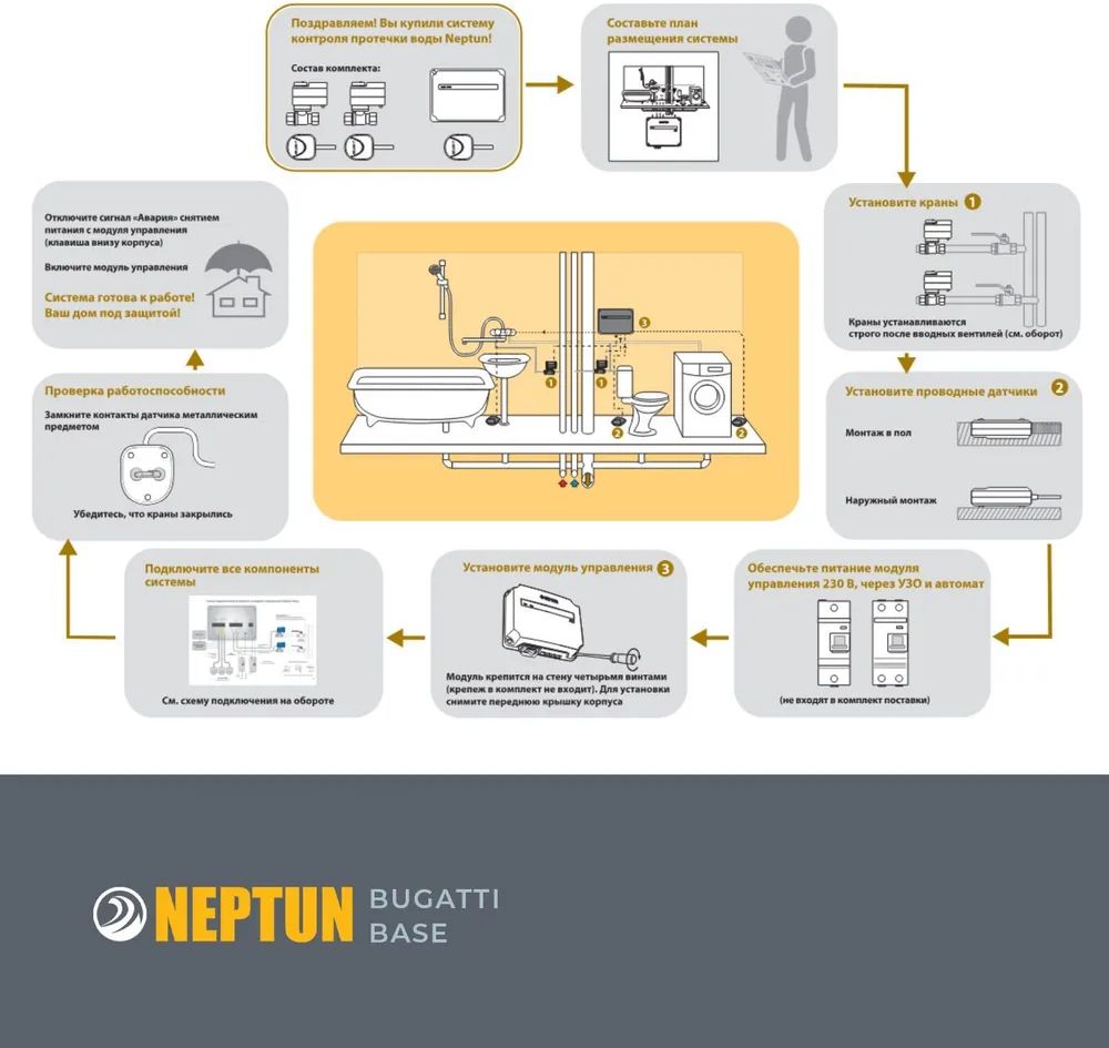 Система защиты от протечек воды 1/2 Нептун Neptun Bugatti Base 2 крана, 3 проводных датчика 100035530000.