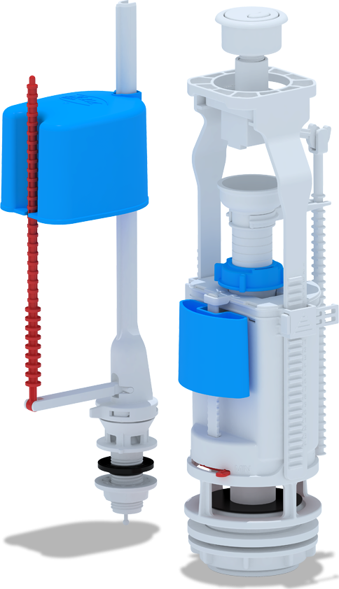 - Наливной механизм с нижней подводкой и пластиковой резьбой диаметром 1/2"", регулировка по высоте 234-328 мм.