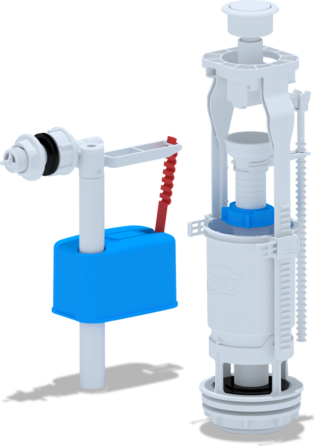 - Наливной механизм с боковой подводкой и пластиковой резьбой диаметром G 1/2