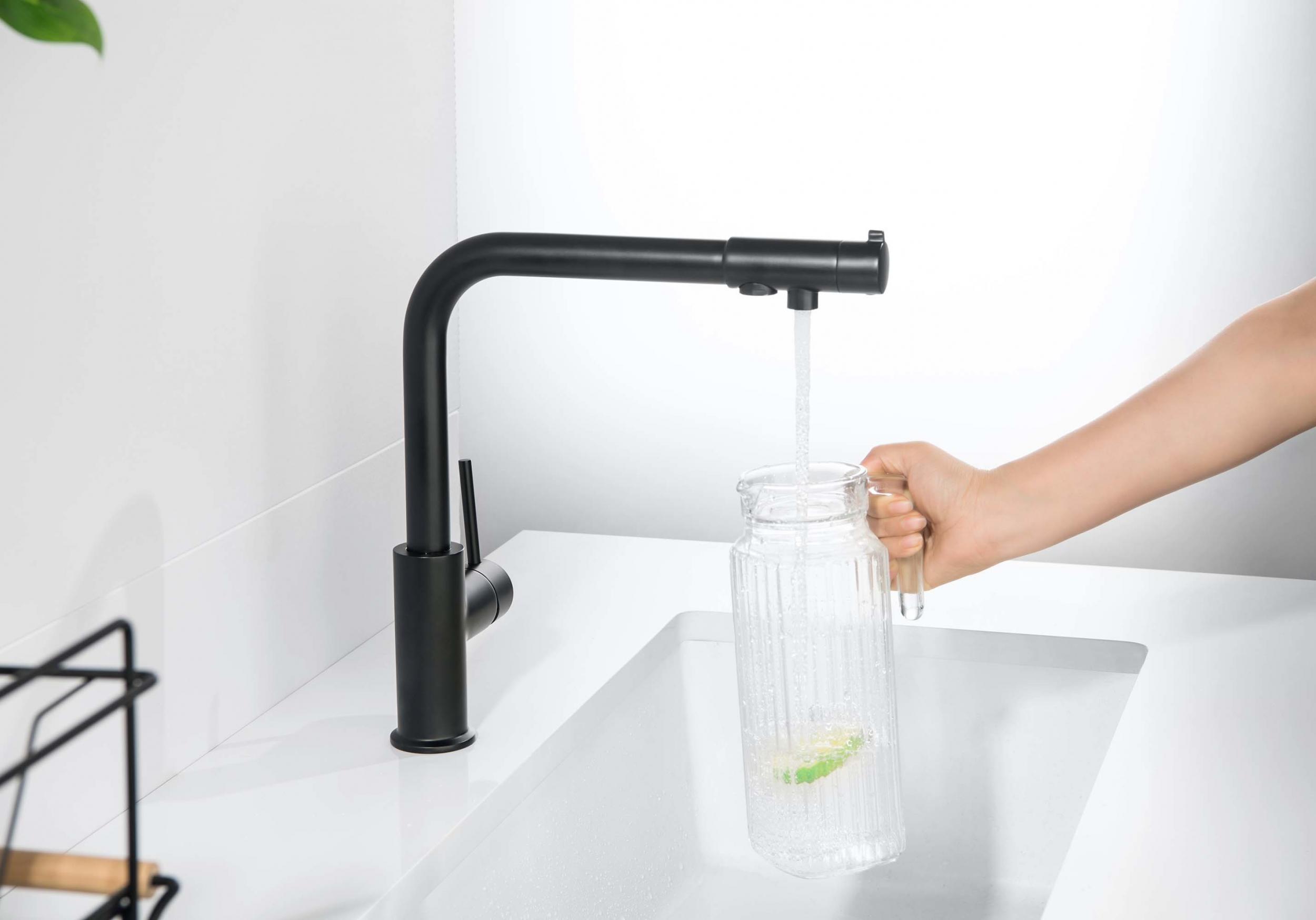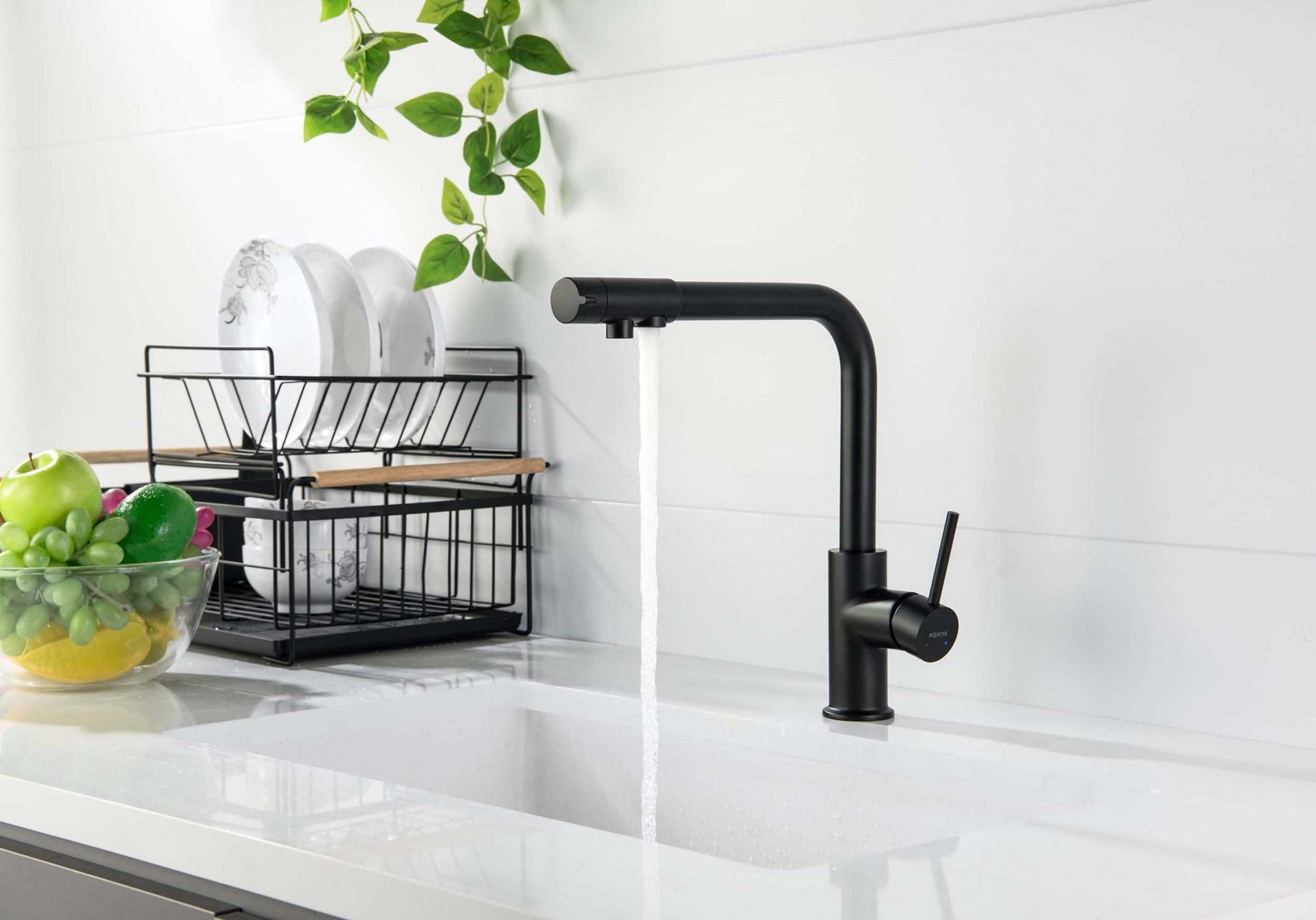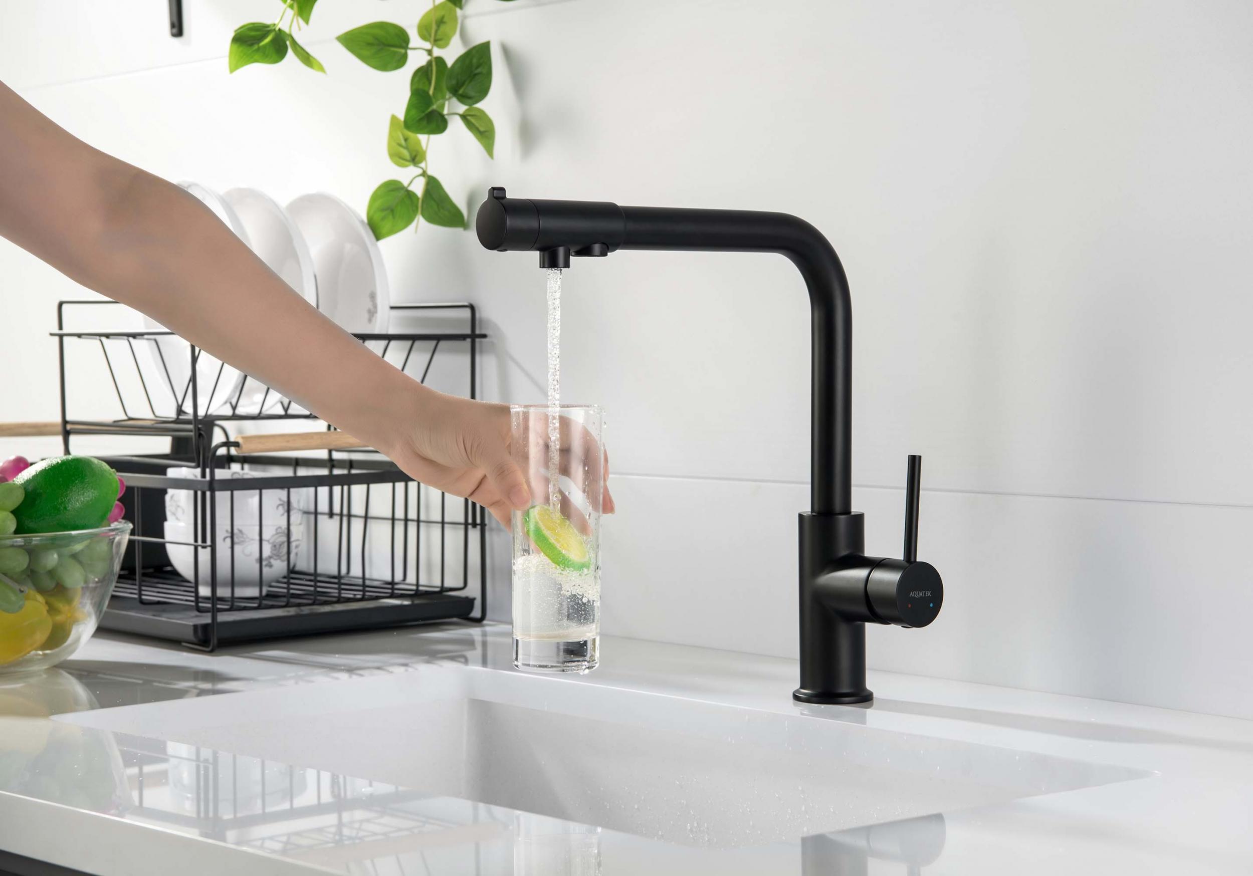 Смеситель для кухни Aquatek Европа AQ1386MB с подключением фильтра, материал латунь, цвет чёрный матовый.