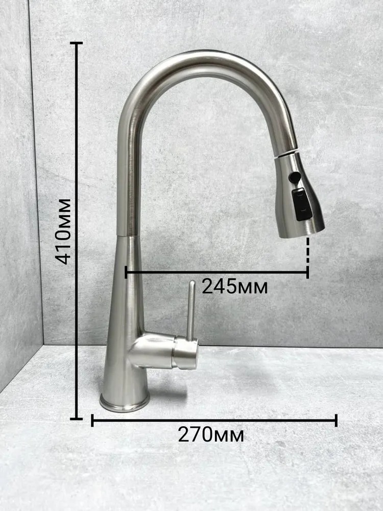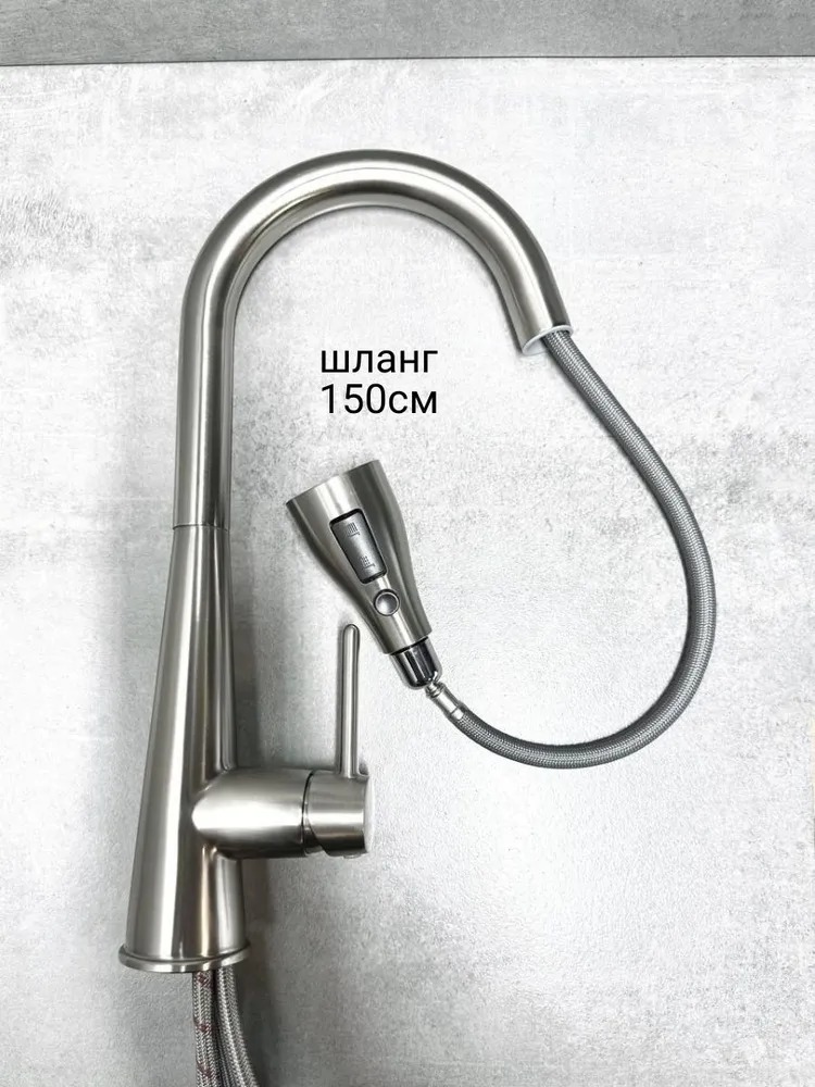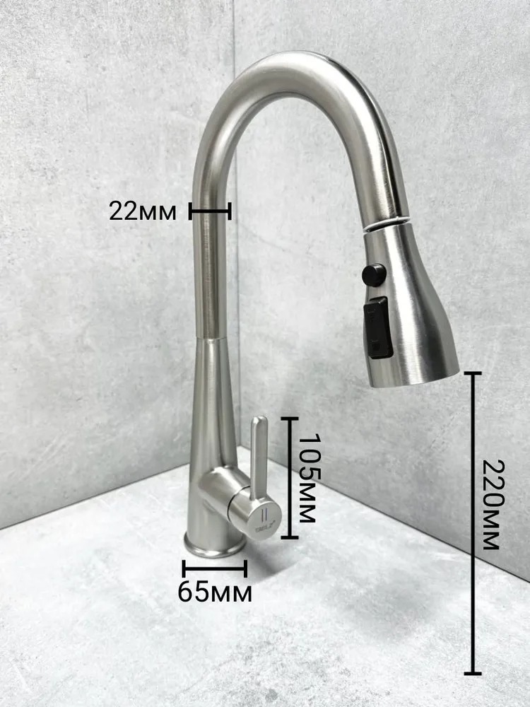 Смеситель для кухни BELZ B74816-6 с выдвижным, поворотным изливом, материал - нержавеющая сталь, цвет - никель.