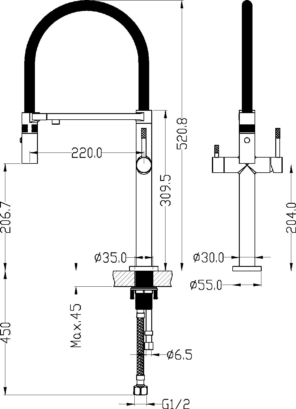 Описание смеситель для кухни с гибким изливом Boheme 115-MG