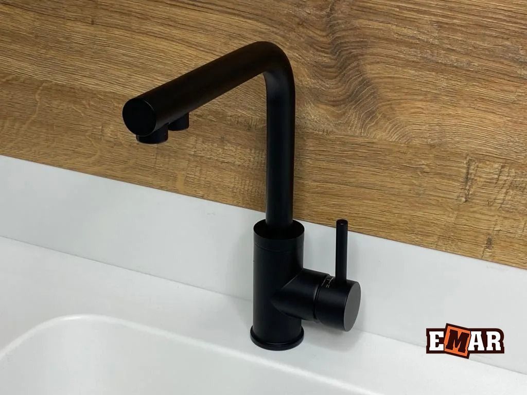 Смеситель для кухни Emar ЕСВ 7015 Black с подключением фильтра, материал нержавеющая сталь, цвет чёрный.