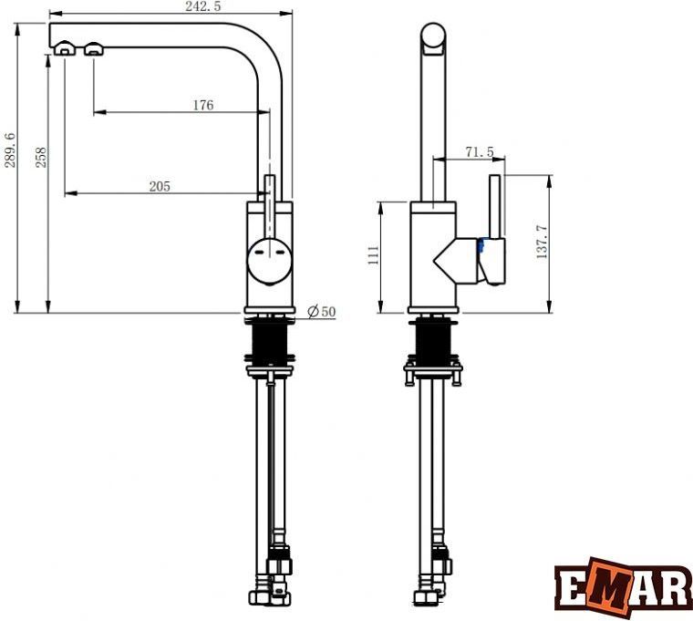 Характеристики смеситель для кухни с подключением фильтра Emar (ЕСВ 7015 Black)