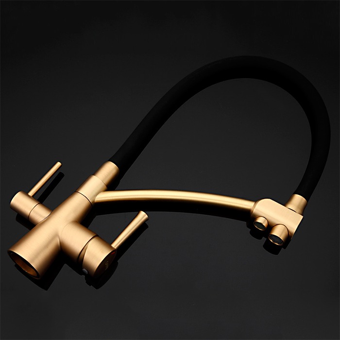 Смеситель для кухни Gappo G4398-1 с гибким, поворотным изливом и подключением фильтра питьевой воды , материал - латунь, цвет - черный/бронза.