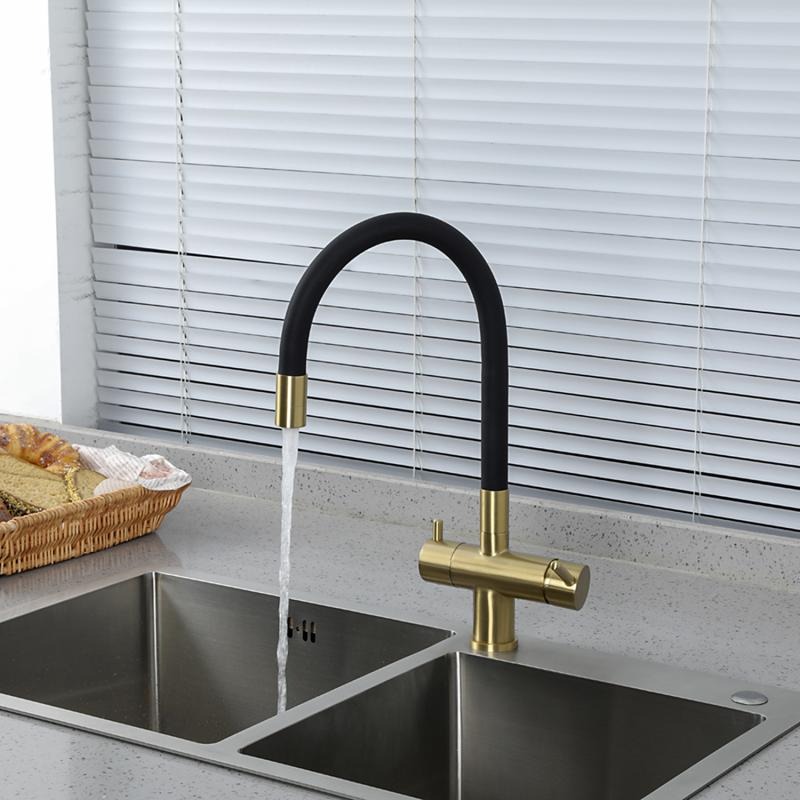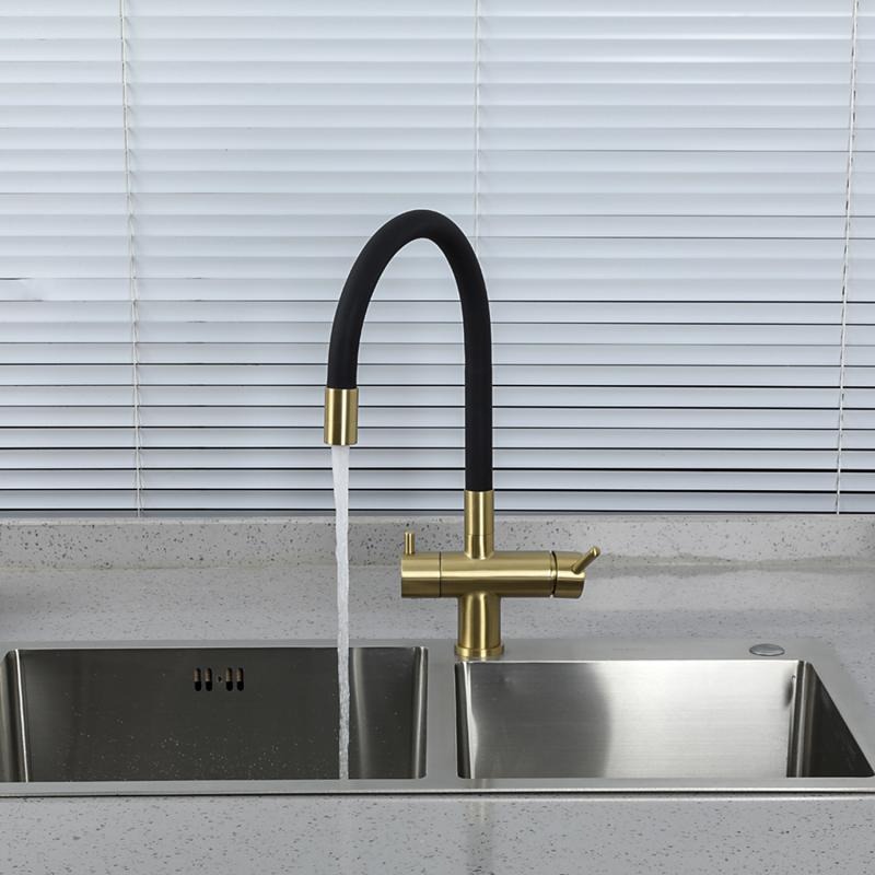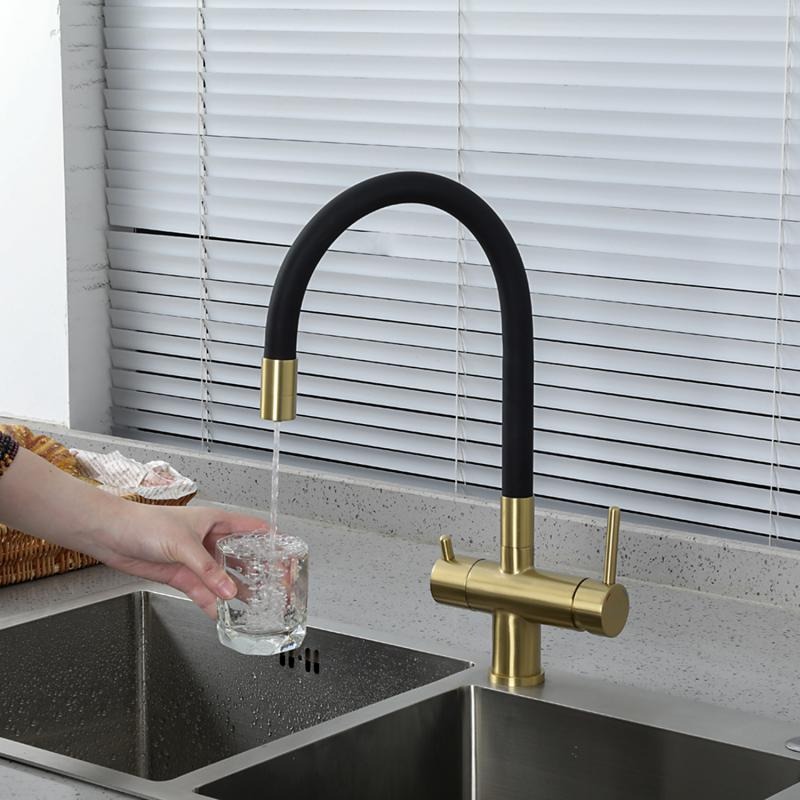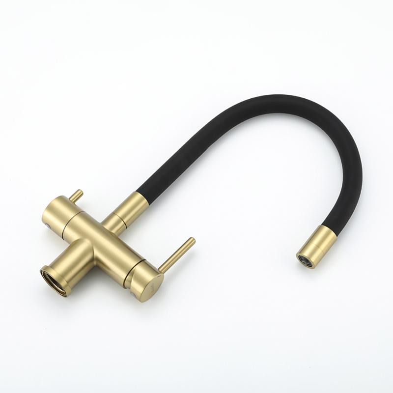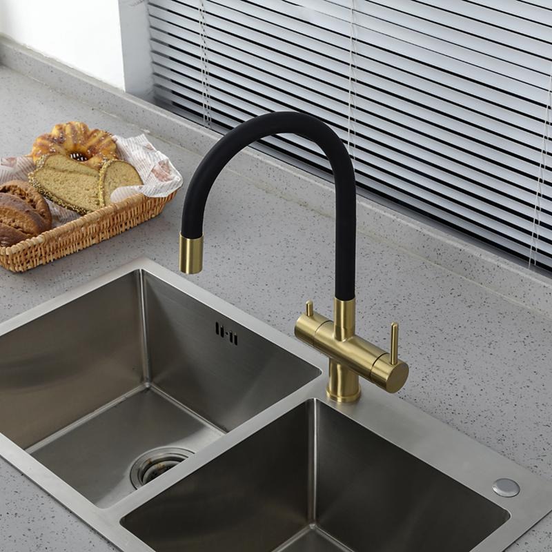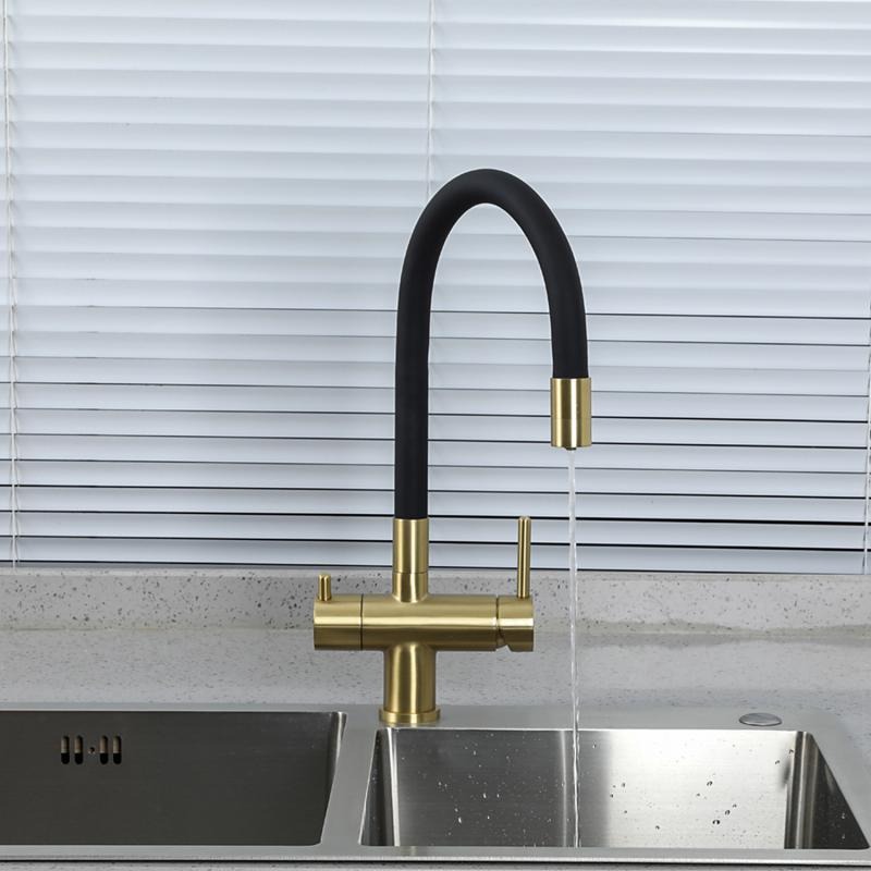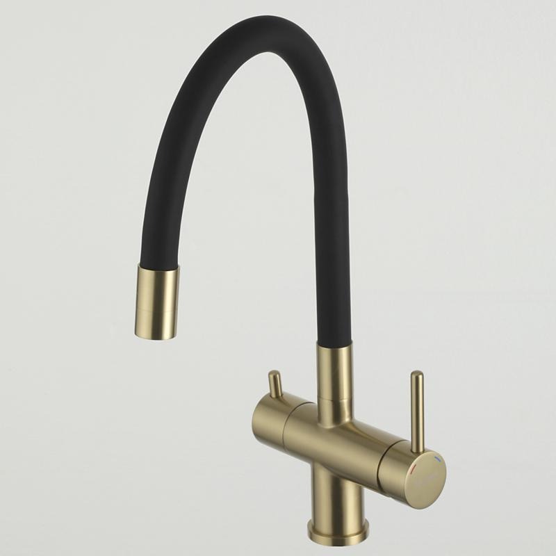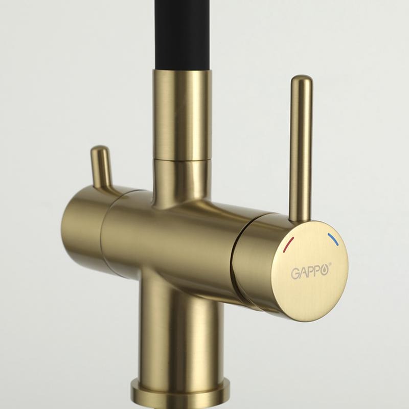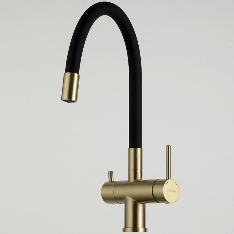 Смеситель для кухни Gappo G4398-33 с гибким изливом и подключением фильтра, материал - латунь, цвет - золото/черный.